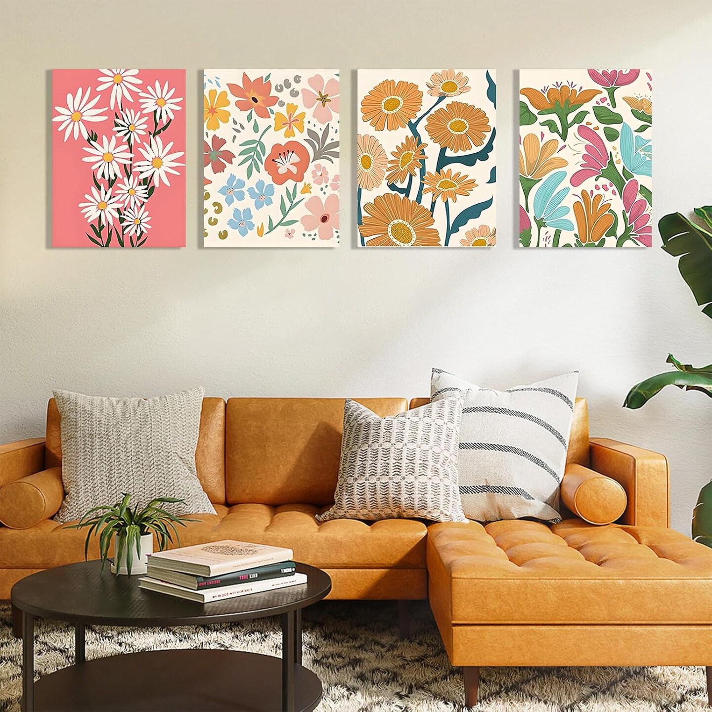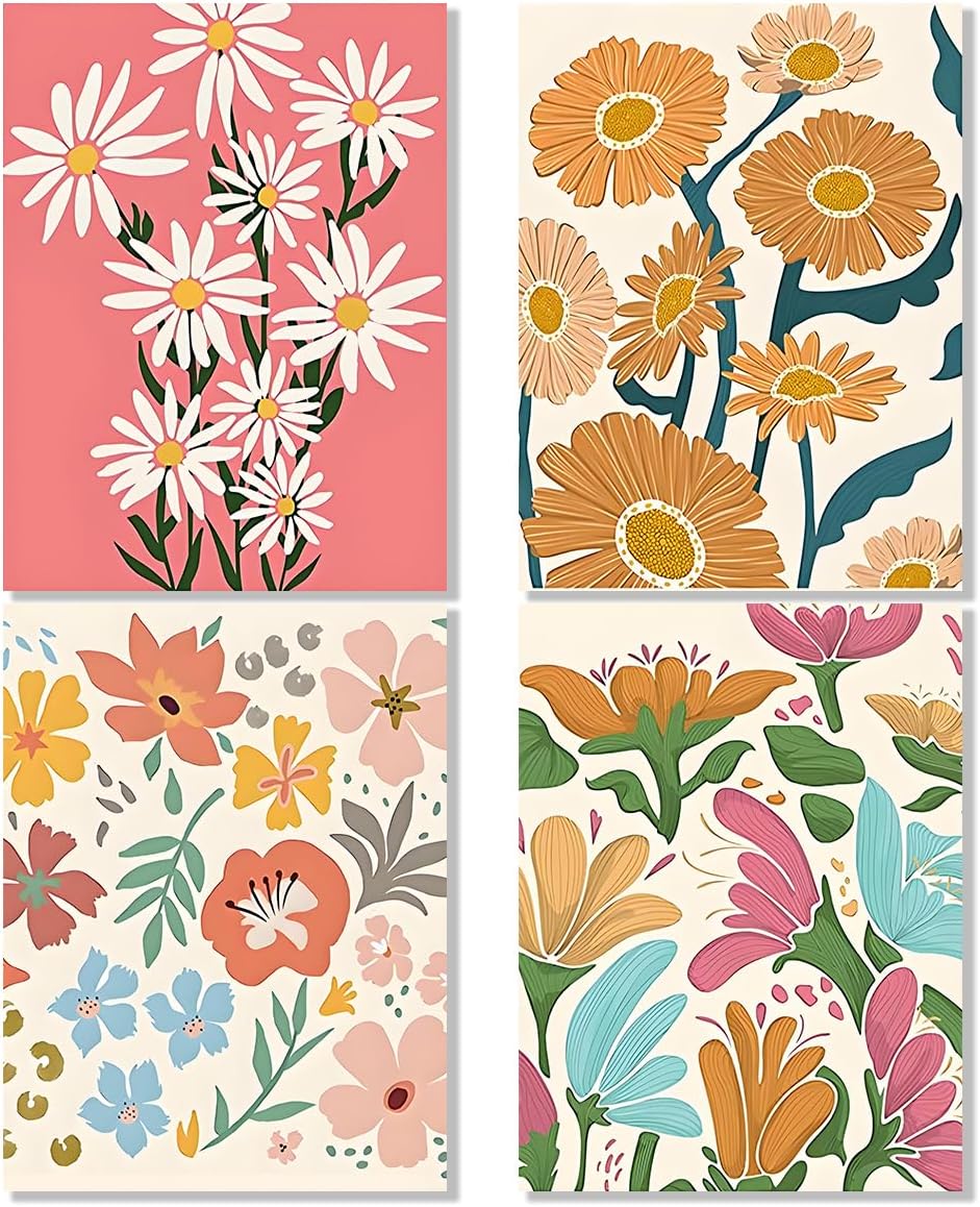 4 Pack Easy Paint by Numbers Kit for Adults Beginner,Small Paint by Number Kits for Kids Flower,Paint by Number Kit for Adults Flowers Cheerful Painting by Numbers on Canvas for 8x12 Inch