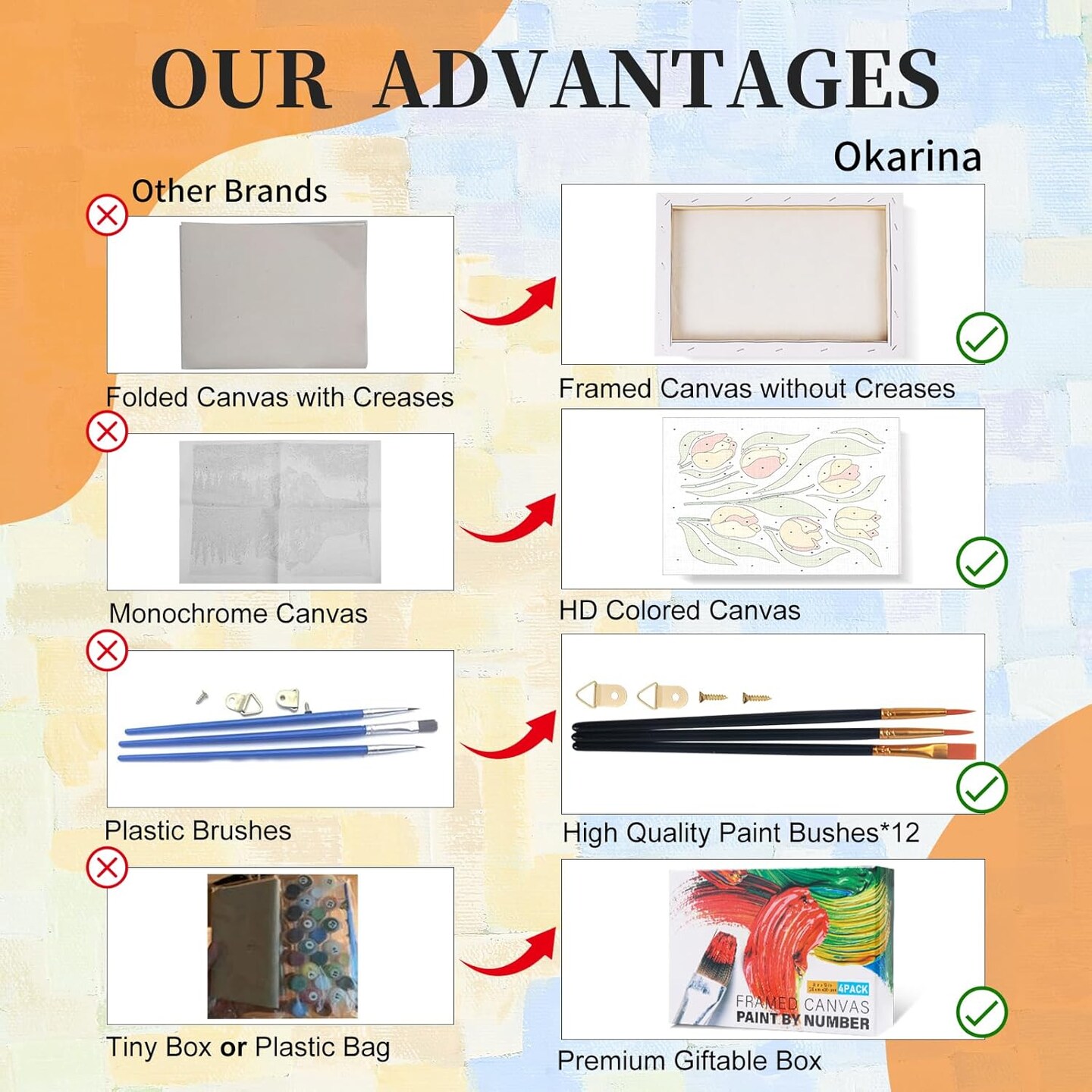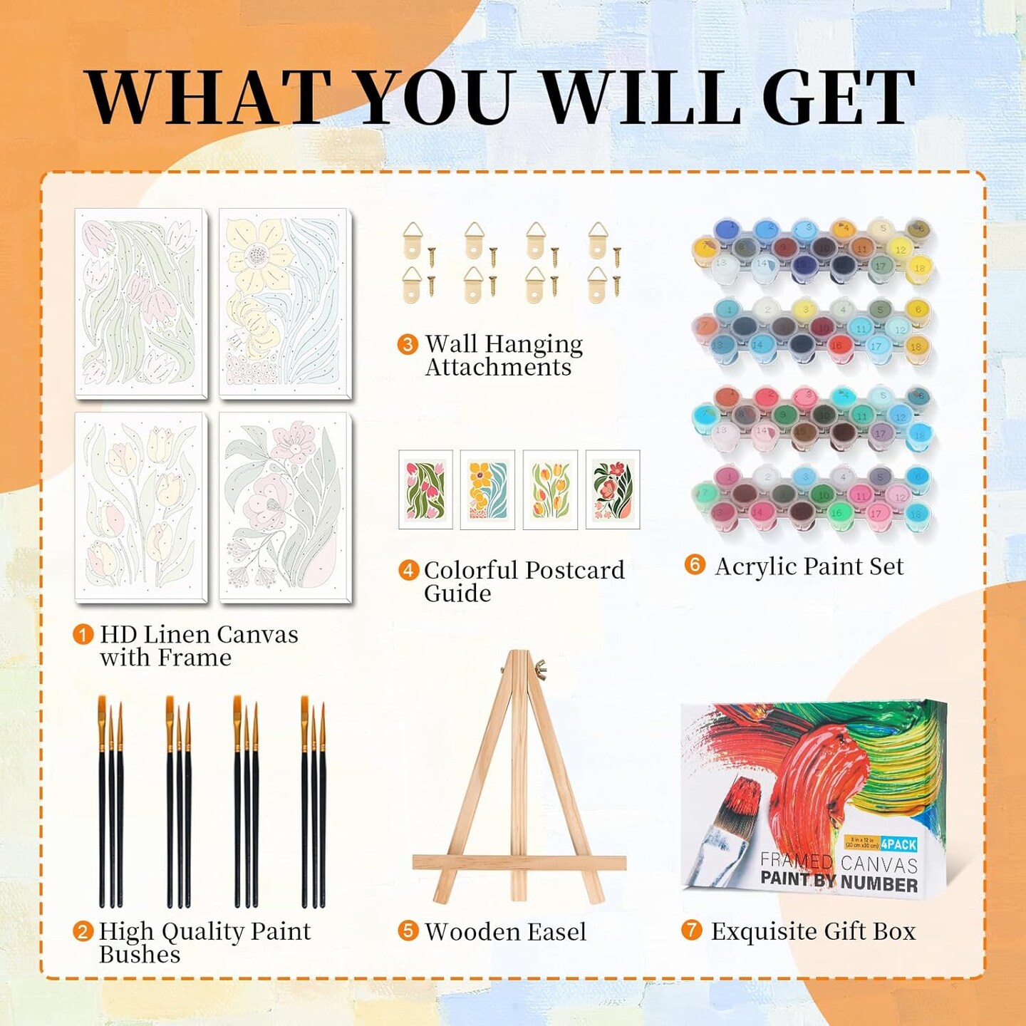4 Pack Framed Paint by Numbers Kits for Adults – Floral DIY Acrylic Painting Set with Wooden Easel, Beginner-Friendly Paint by Numbers Canvas Art for Home Decor, 8x12 Inch