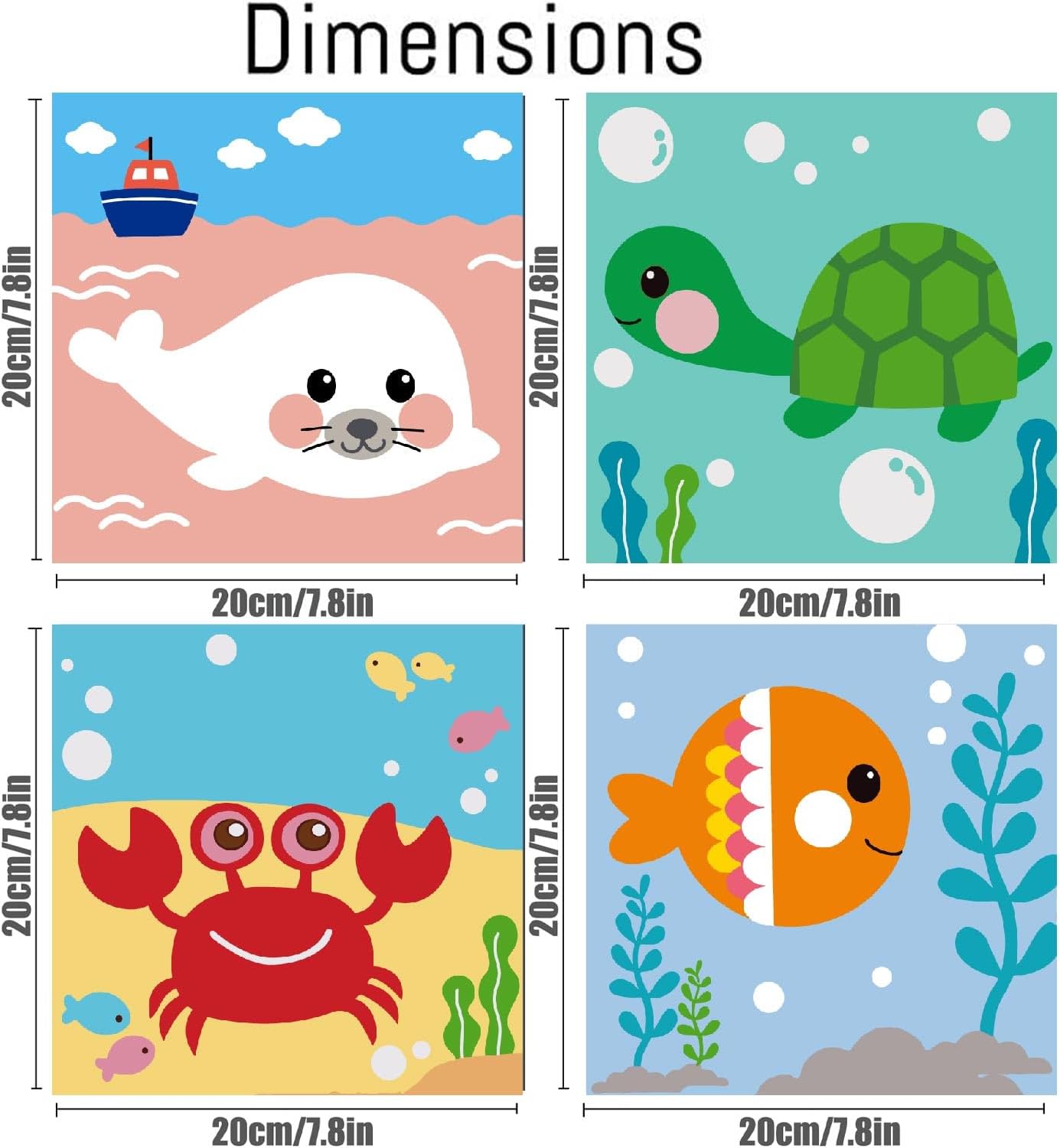 4 Pack Framed Paint by Numbers Sea Animals Painting Kits