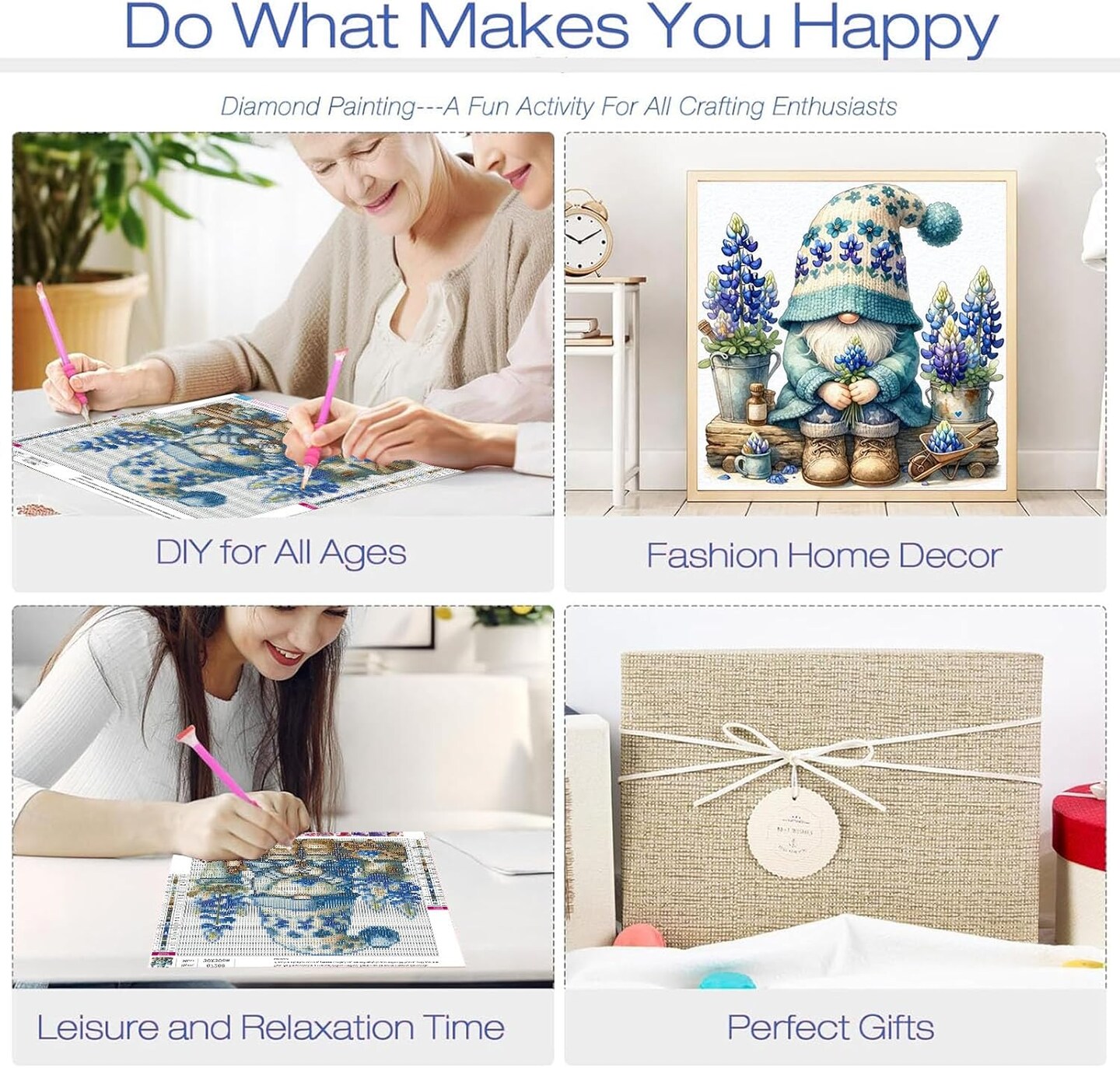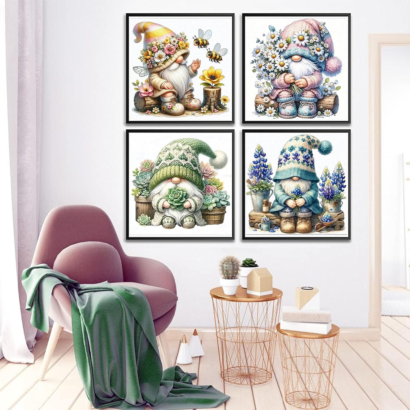 4 Pack Gnome Diamond Painting Kits for Adults-Gnome Diamond Art Kits for Adults,Diamond Painting Gnome DIY 5D