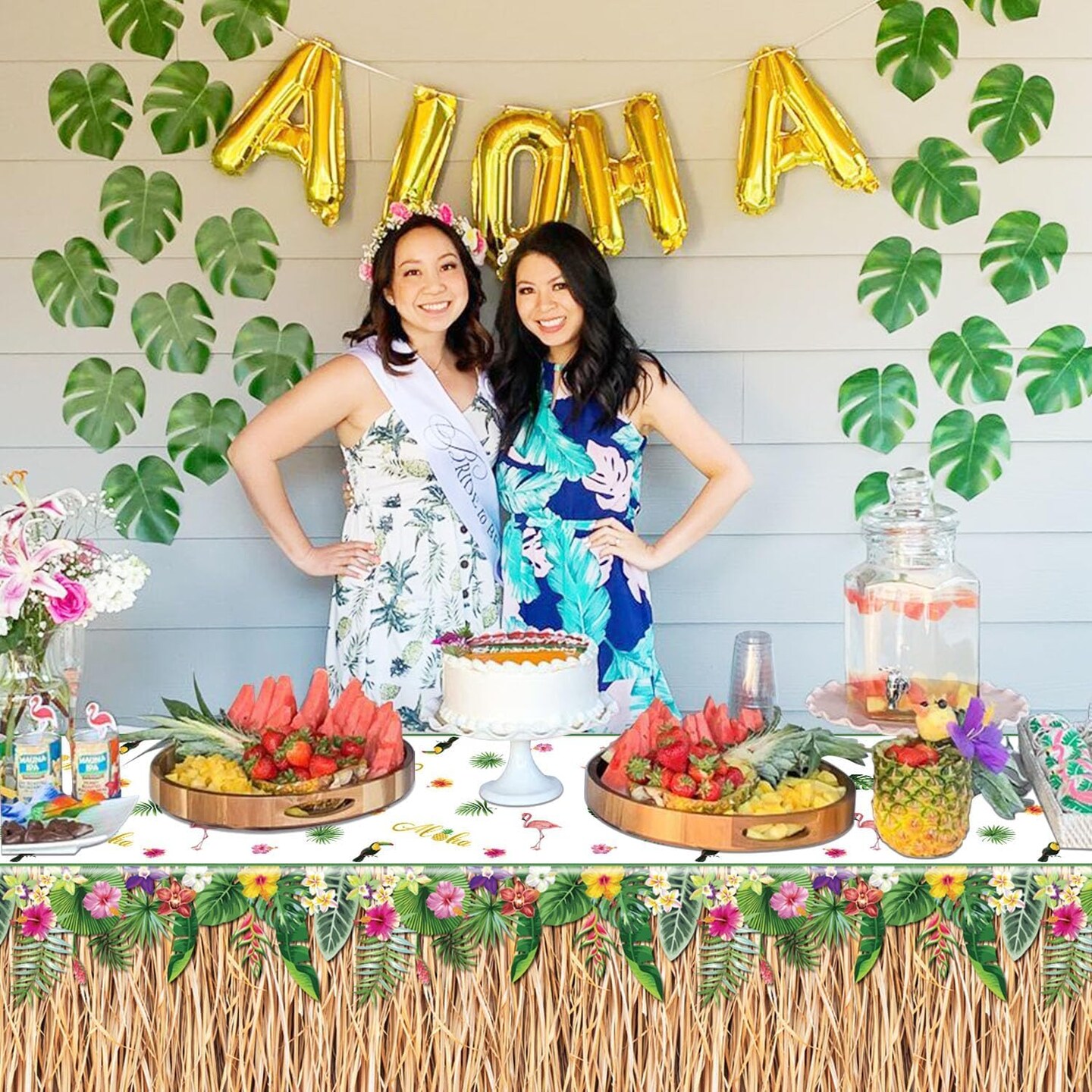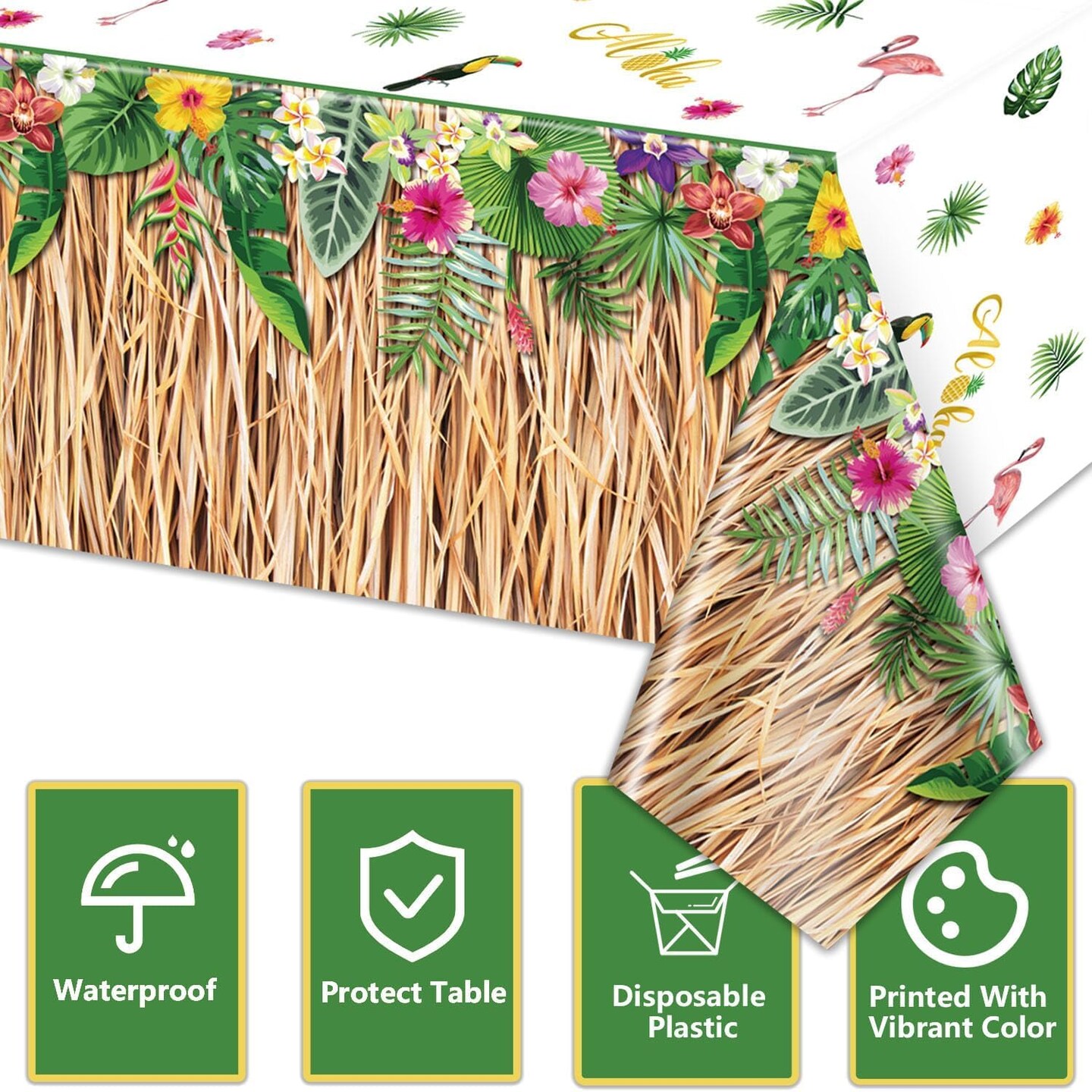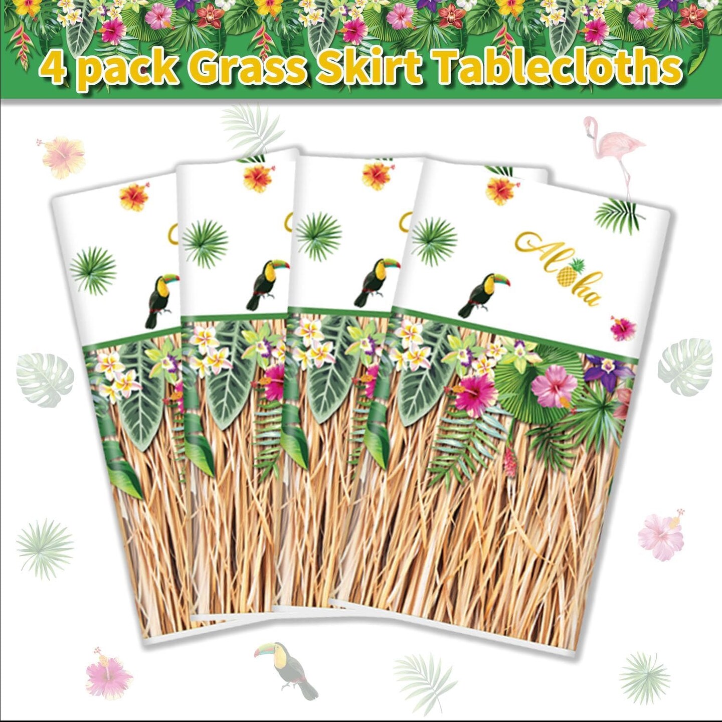 4 Pack Hawaiian Luau Grass Tablecloths, Hawaii Luau Table Skirt Party Decorations