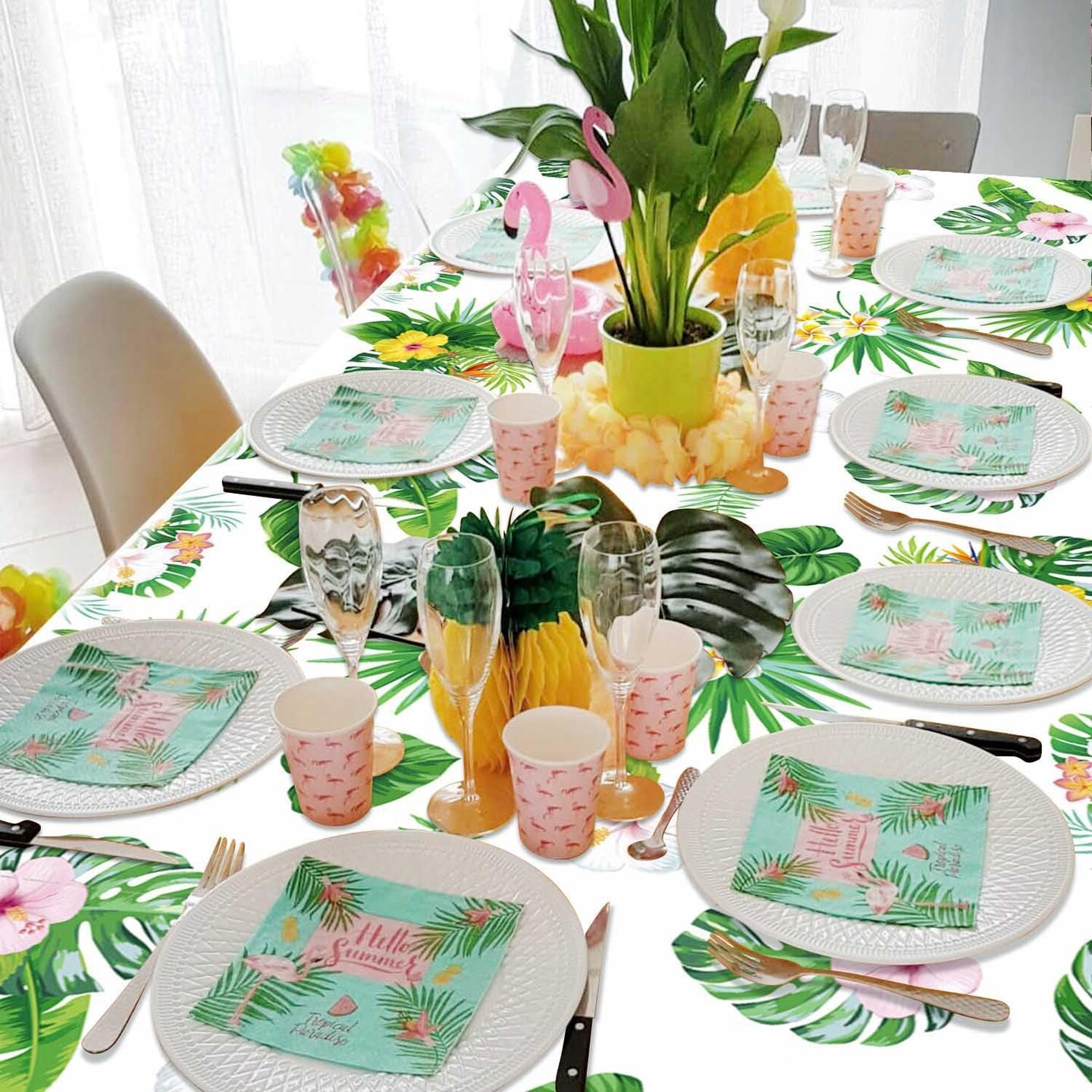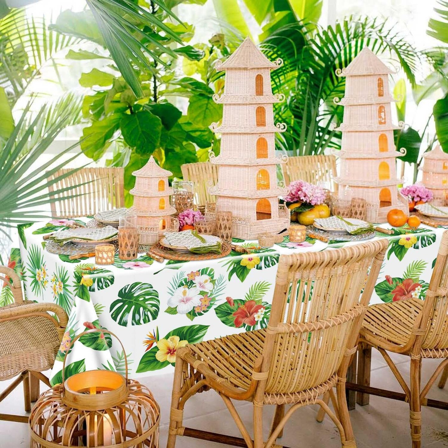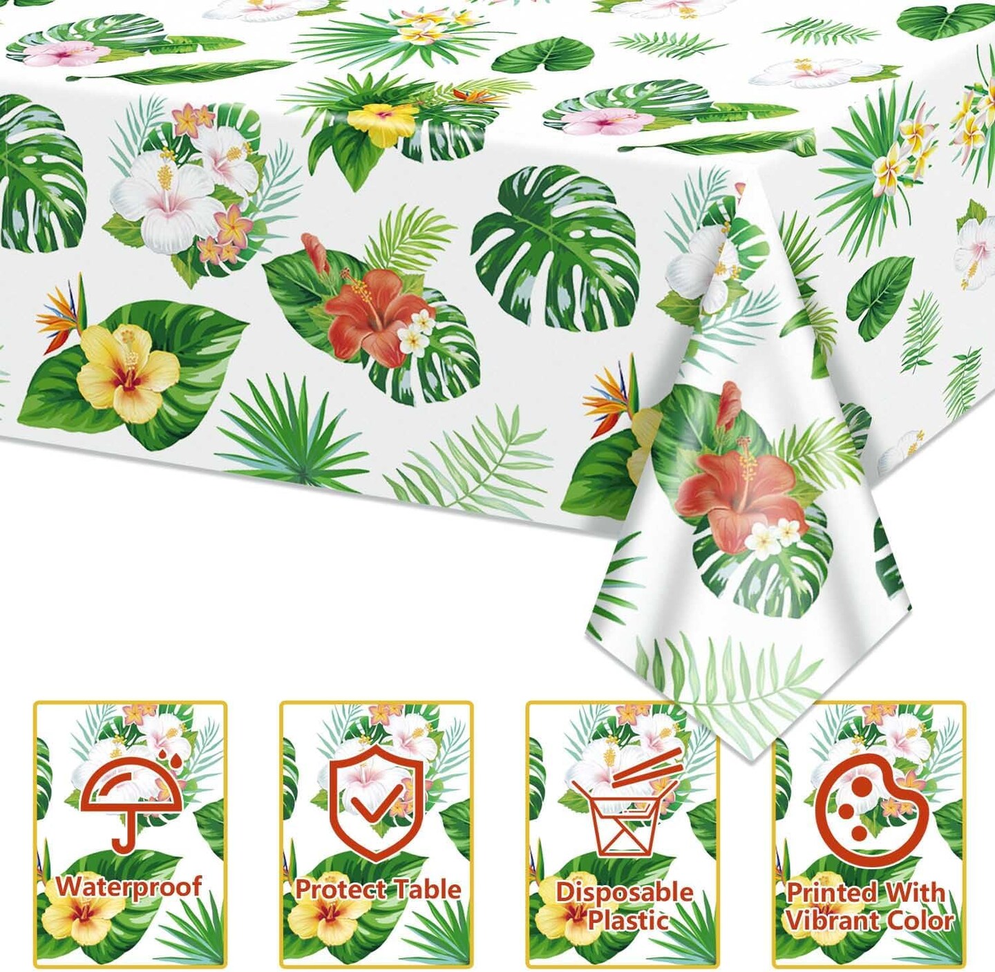4 Pack Hawaiian Luau Tablecloths for Party Decorations