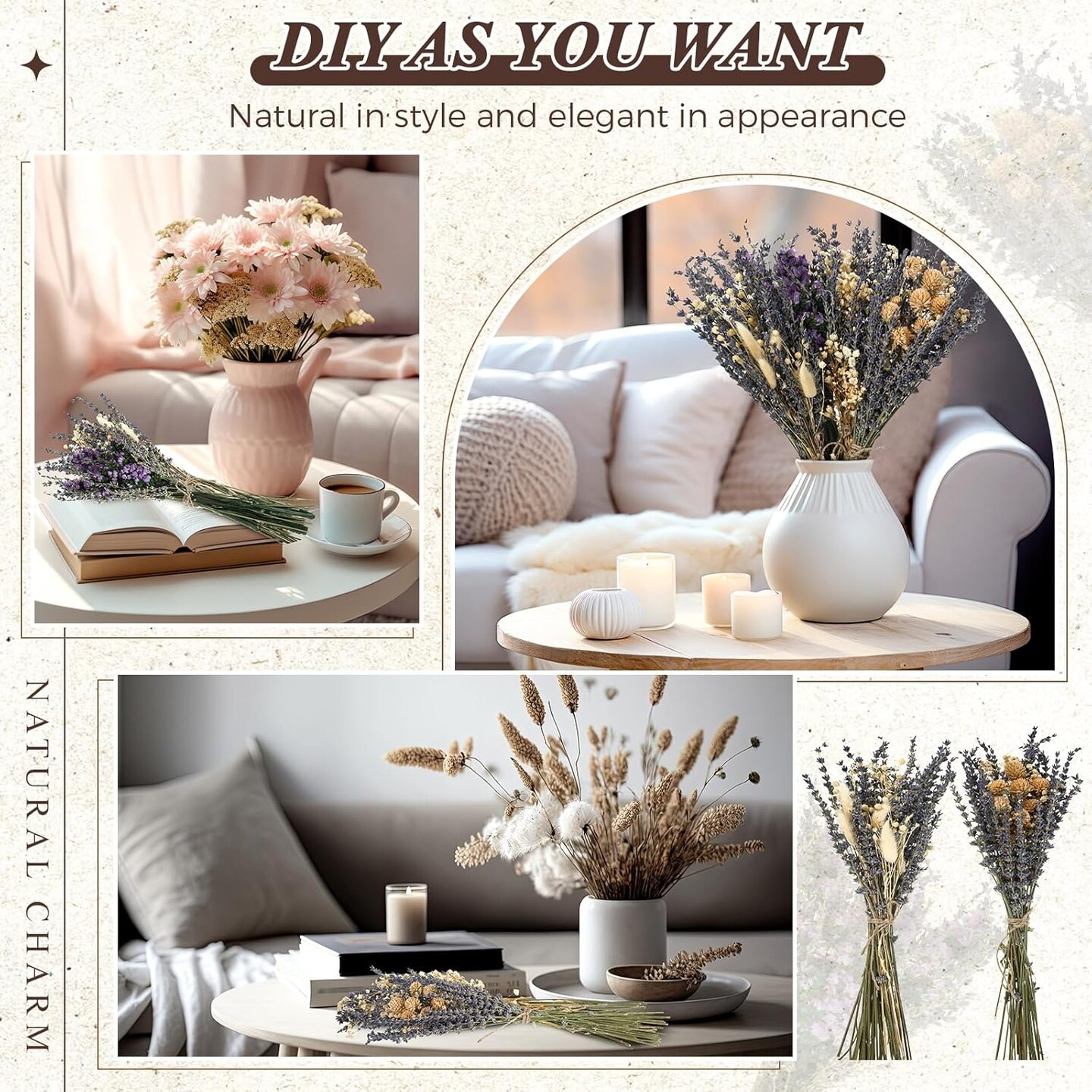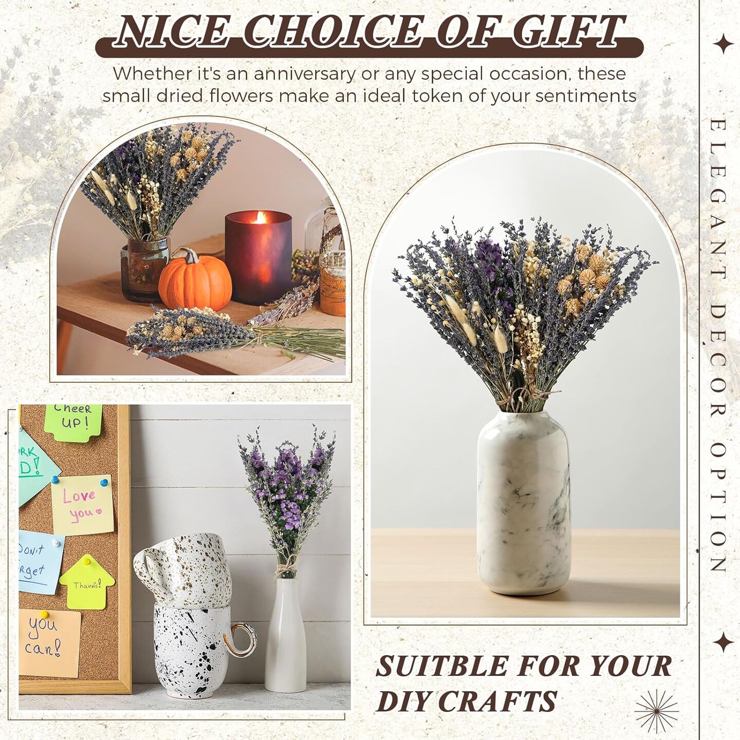 4 Pack Large Size Boho Dried Flower Bouquet 15-17 Inch Wedding Handmade Dry Flowers for Vase Crafts DIY Photo Boutonniere for Men Floral Plant for Bridesmaid Gift Birthday Decor(Lavender)