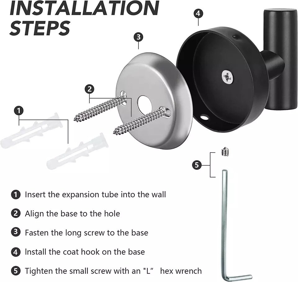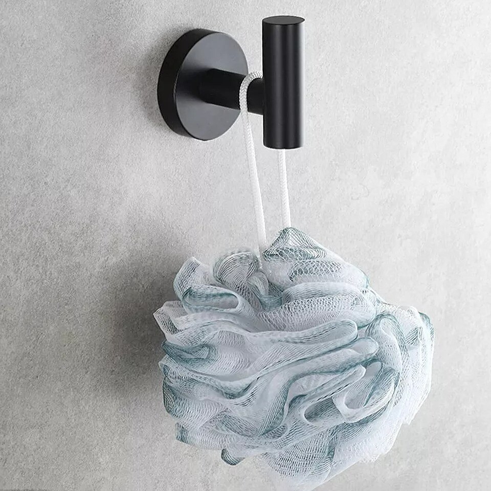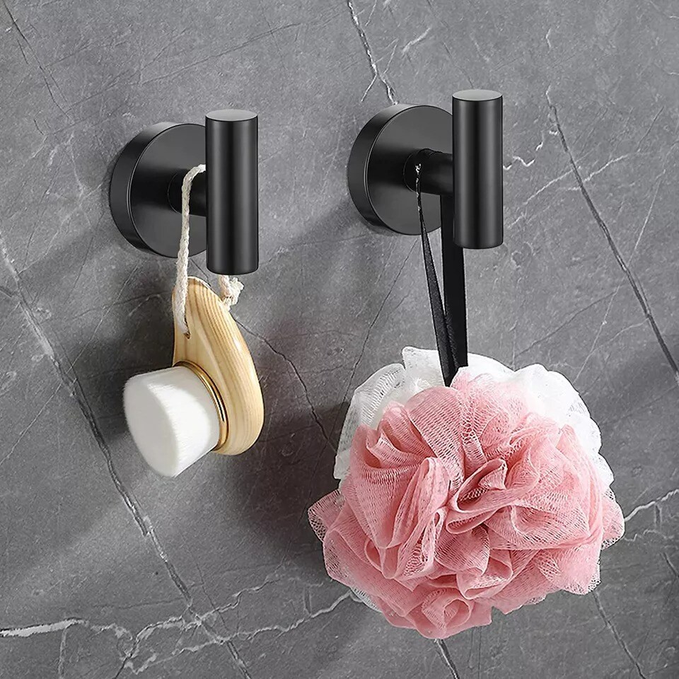 4 Pack Matte Black Stainless Steel Coat Robe Hat Clothes Hook Modern Wall Holder