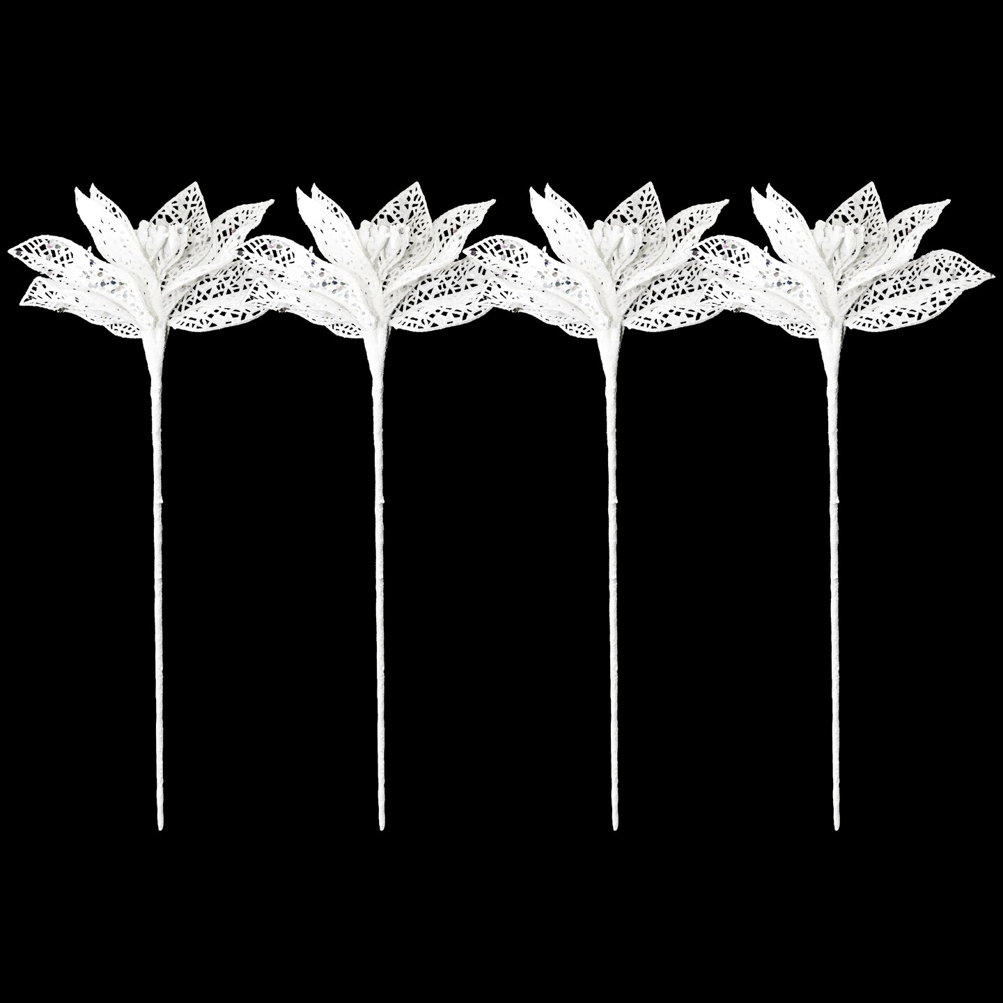 4 Pack of 14" White Flower Picks with Glitter Enhancements