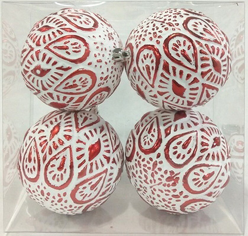 4 Pack of Red and White Textured Design Ornaments