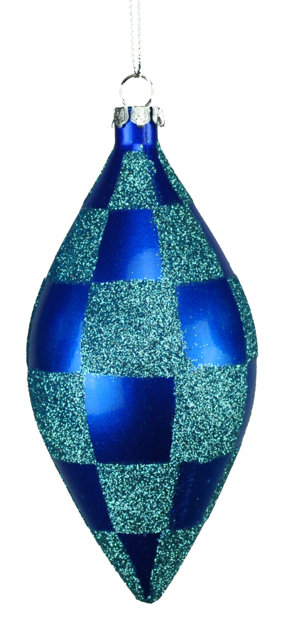 4 Pack or Blue and Teal Checkered Teardrop Ornaments with Glitter Enhancements