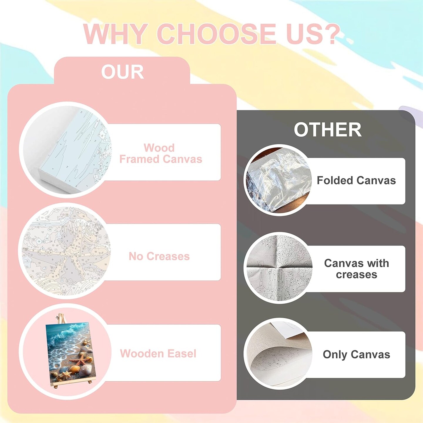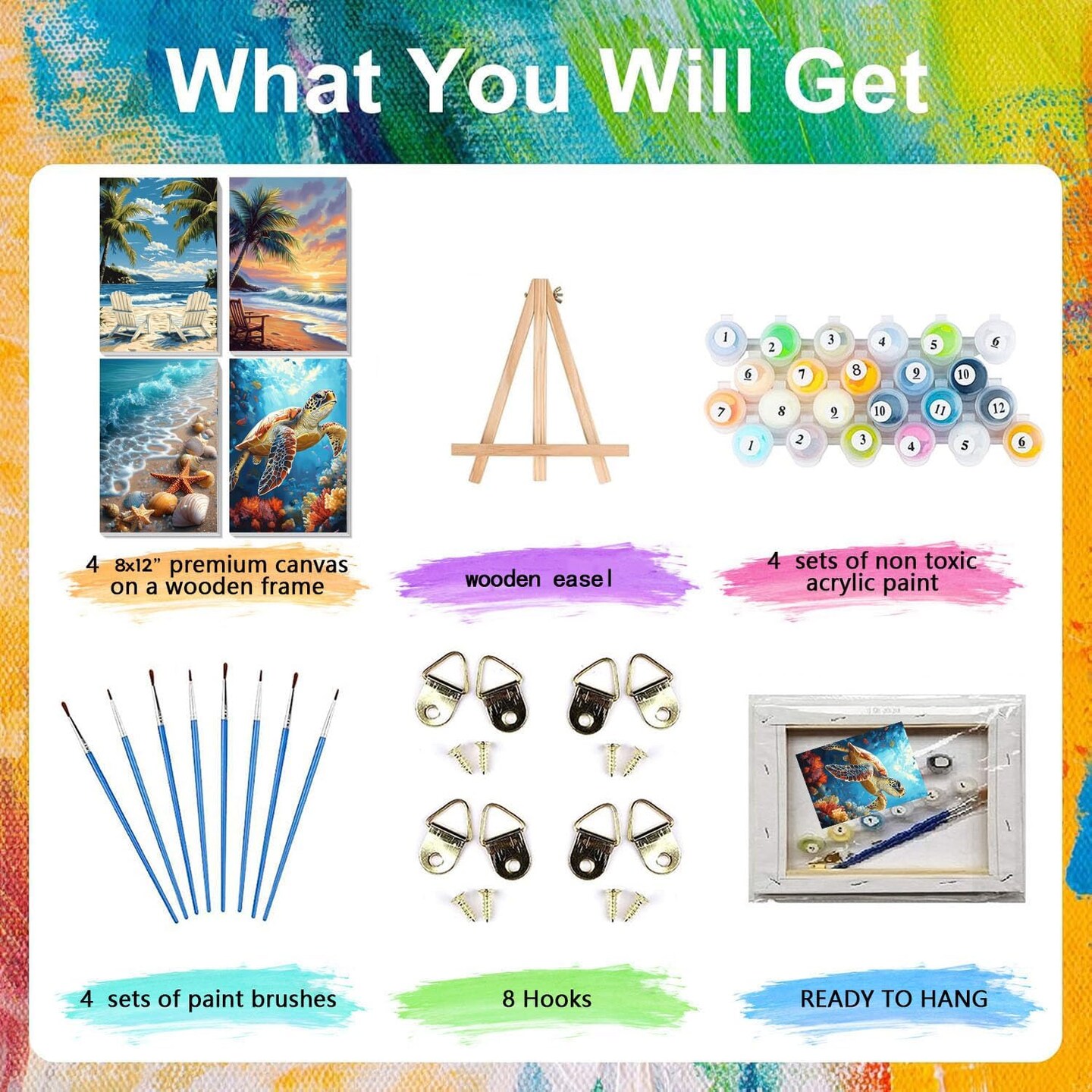 4 Pack Paint by Numbers for Adults, Beach Scene, 12"x8" Framed Canvas with Easel