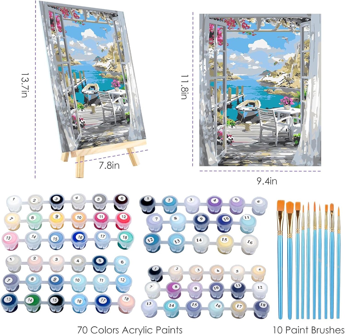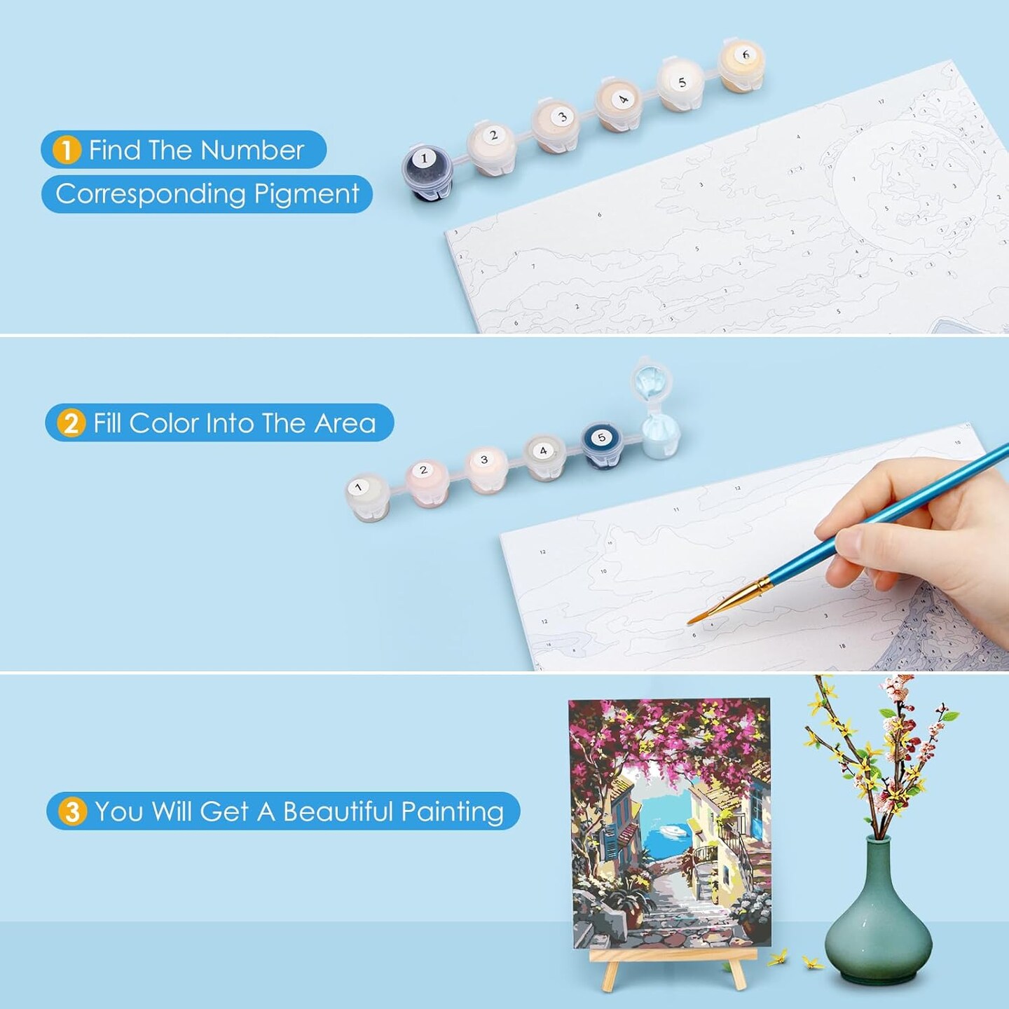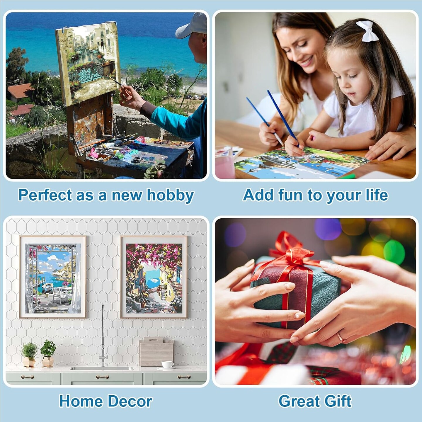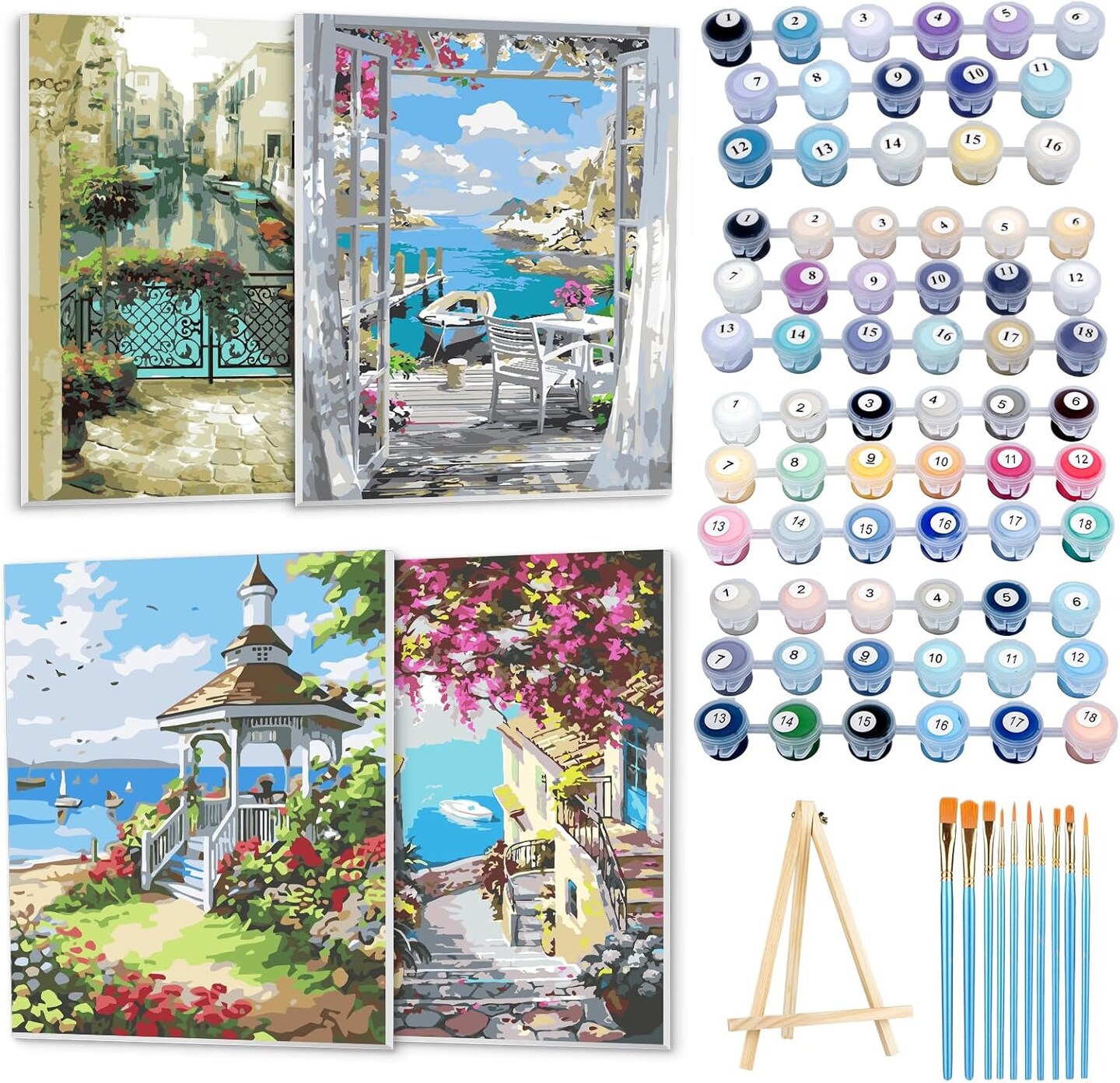 4 Pack Paint by Numbers Kit for Adults with Framed Canvas