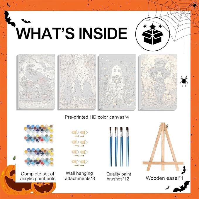 4 Pack Paint by Numbers Kit for Adults - Wooden Easel, Halloween Paint by Numbers with Frame, Halloween Adult Painting by Number Kits on Canvas, Easy Oil Painting Arts Gift Wall Decor 8x12inch