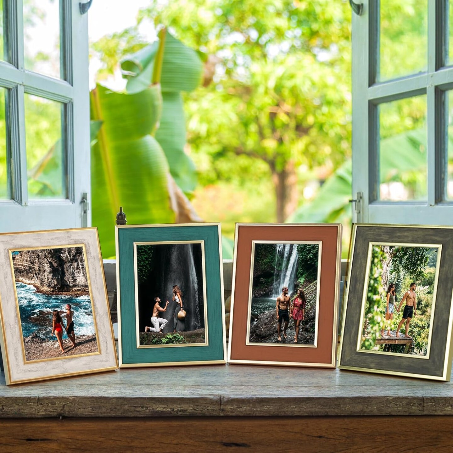 4 Pack Picture Frames Farmhouse Rustic Picture Frame Sets(Mix Color, 5x7 (4pc)(Mix Color)7"L x 5"W