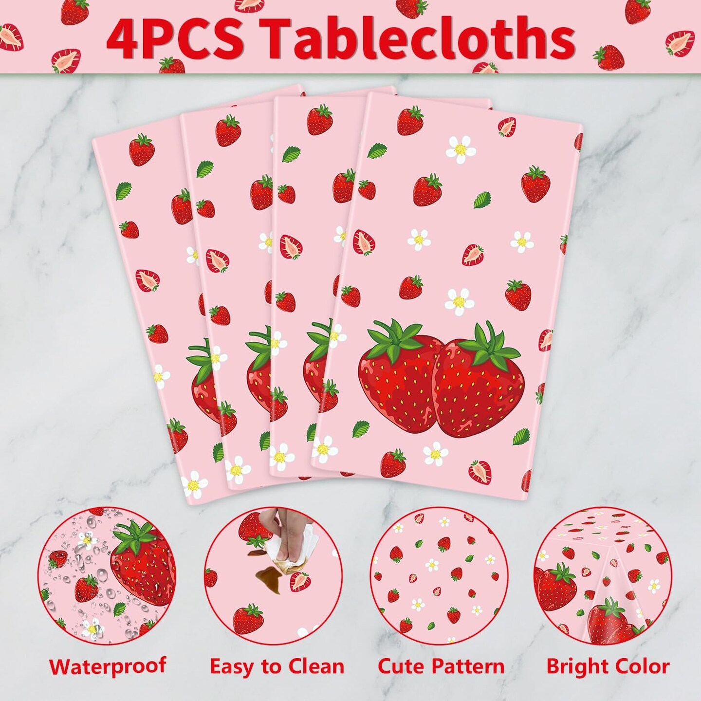 4 Pack Pink Strawberry Table Cloth