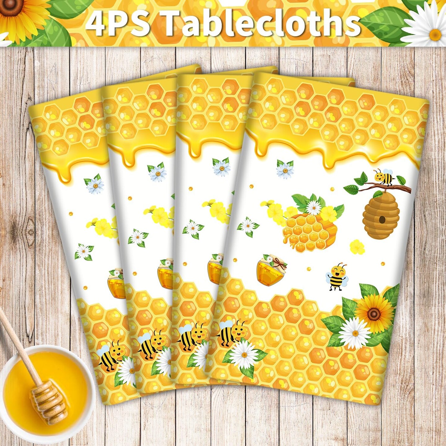 4 Pack Rectangle Honey Bees Bumble Table Cover