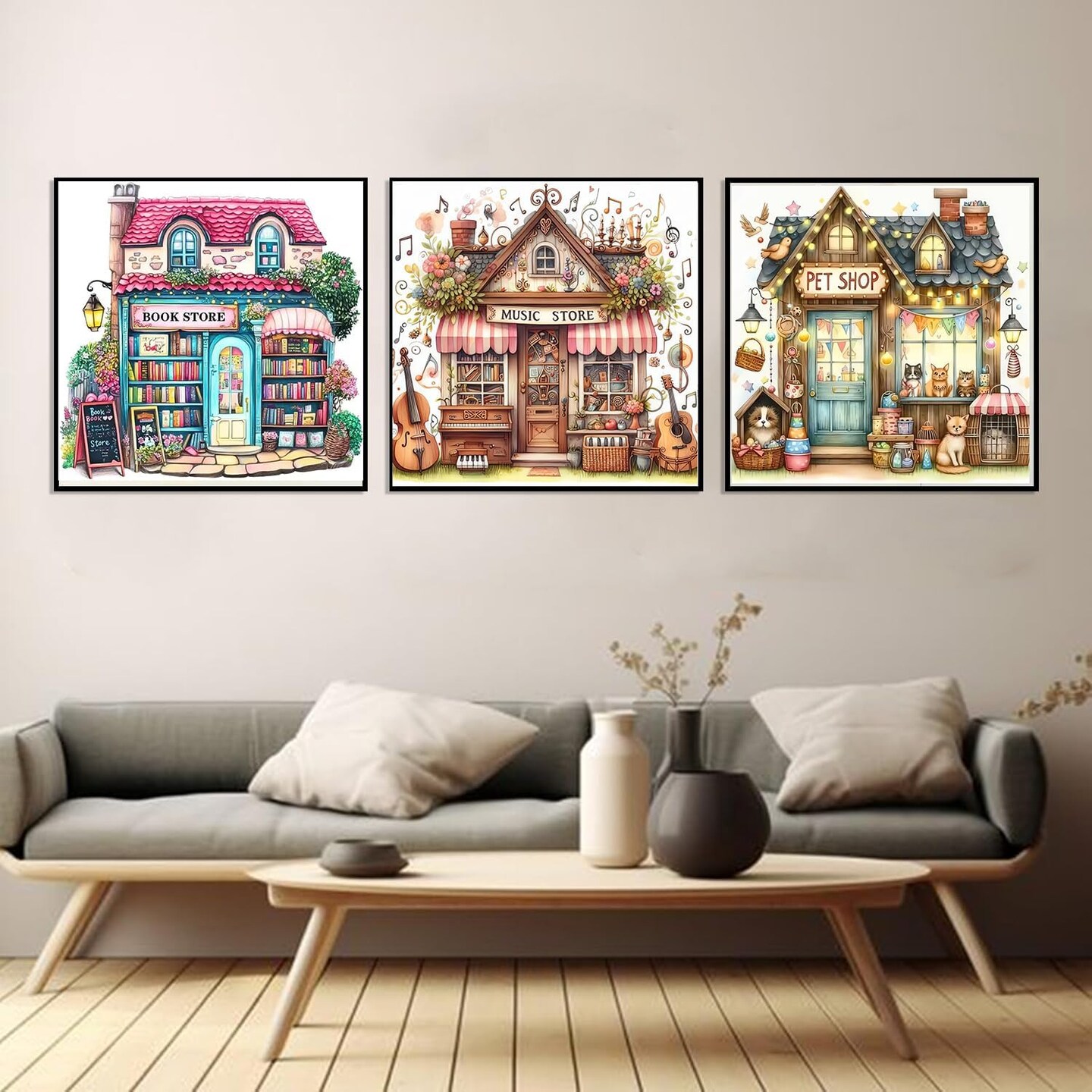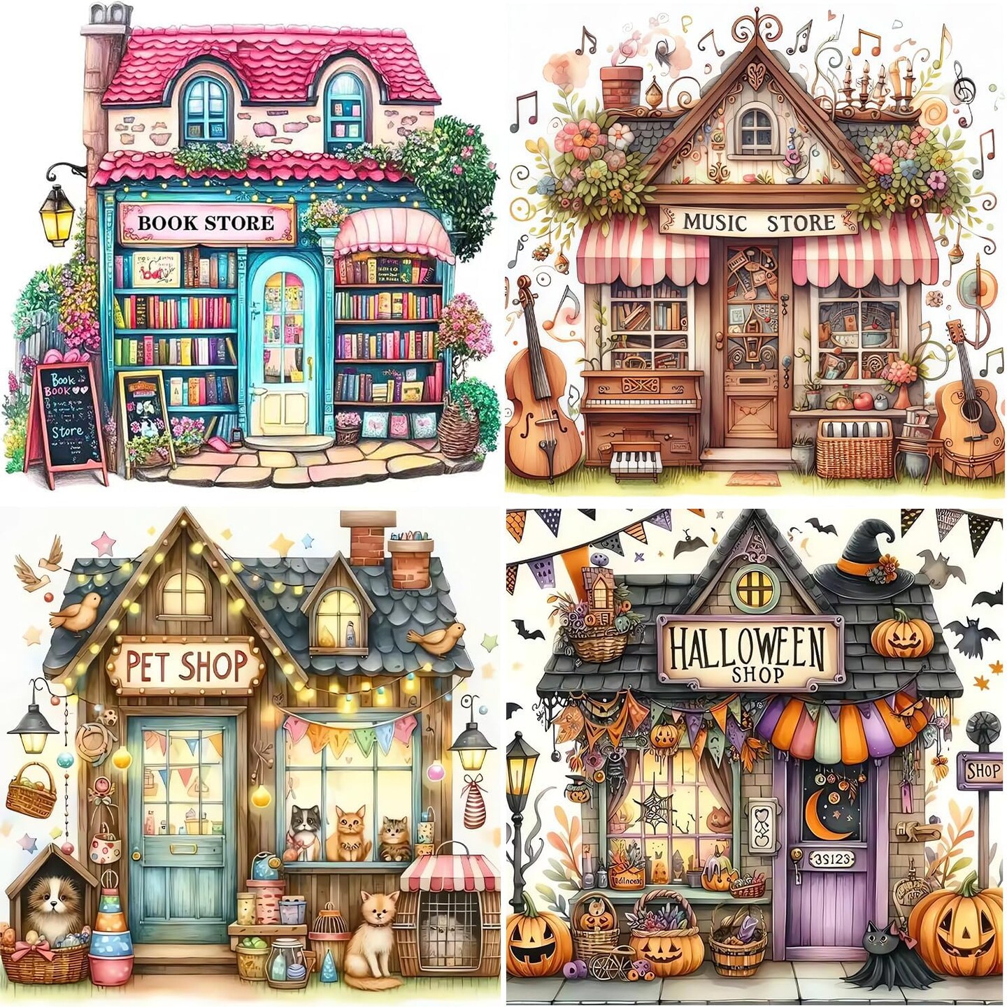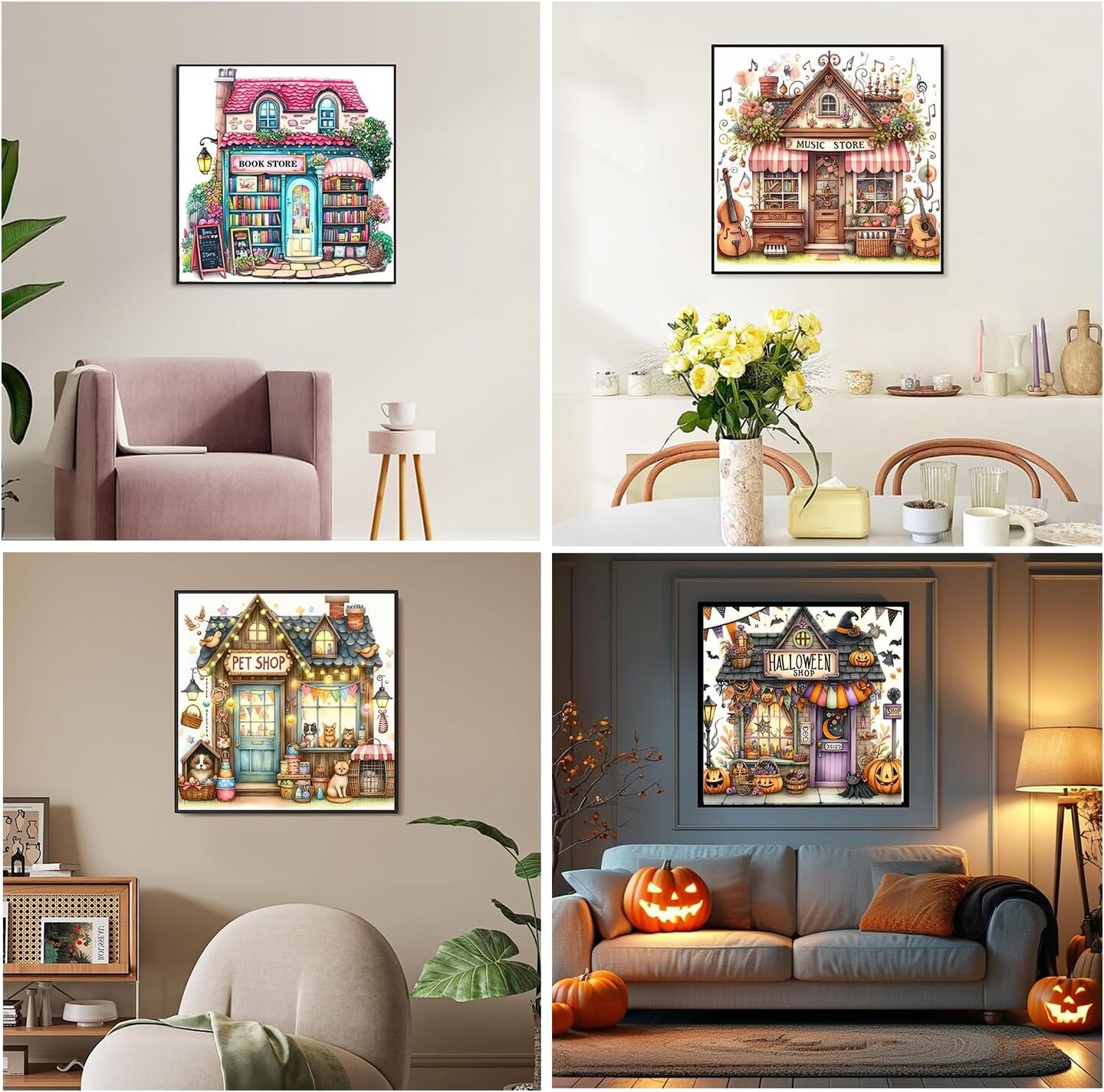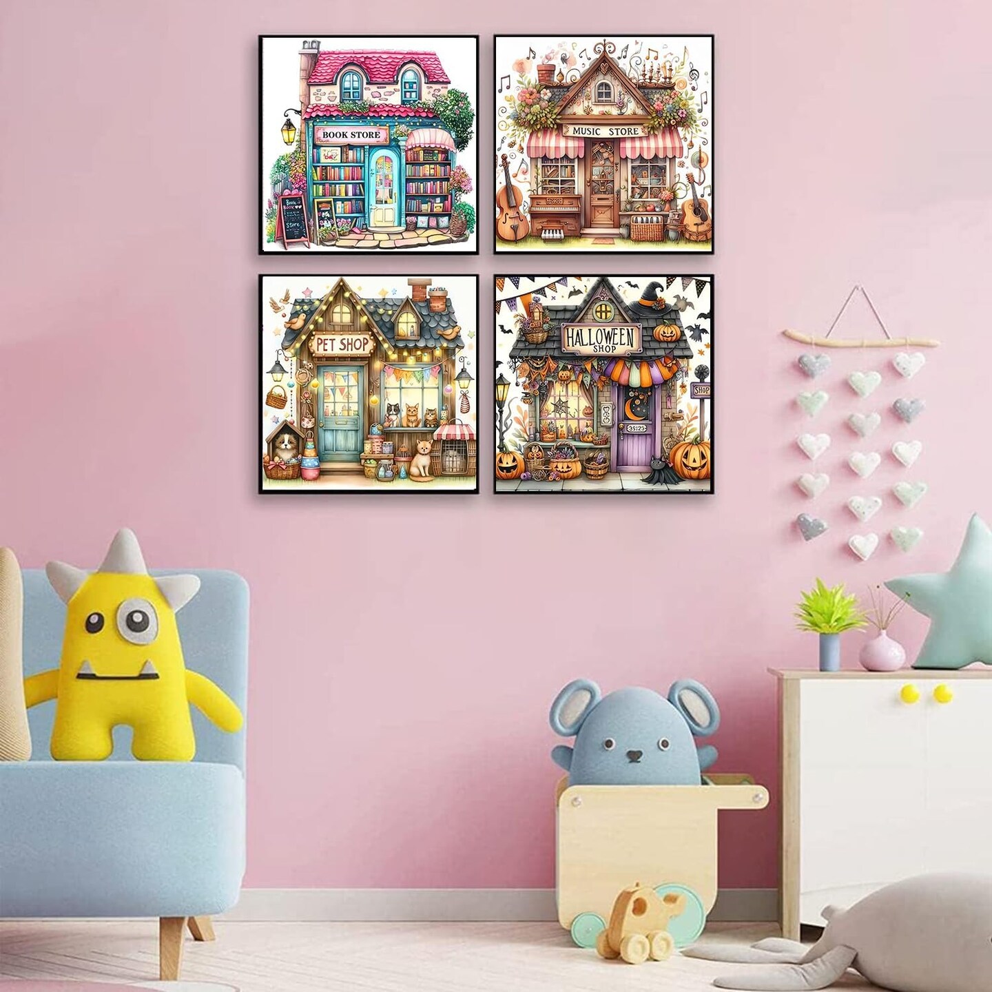 4 Pack Store Diamond Art Kits for Adults – 5D DIY Gem Painting Kit, Round Full Drill, 13.8 x 13.8 inch