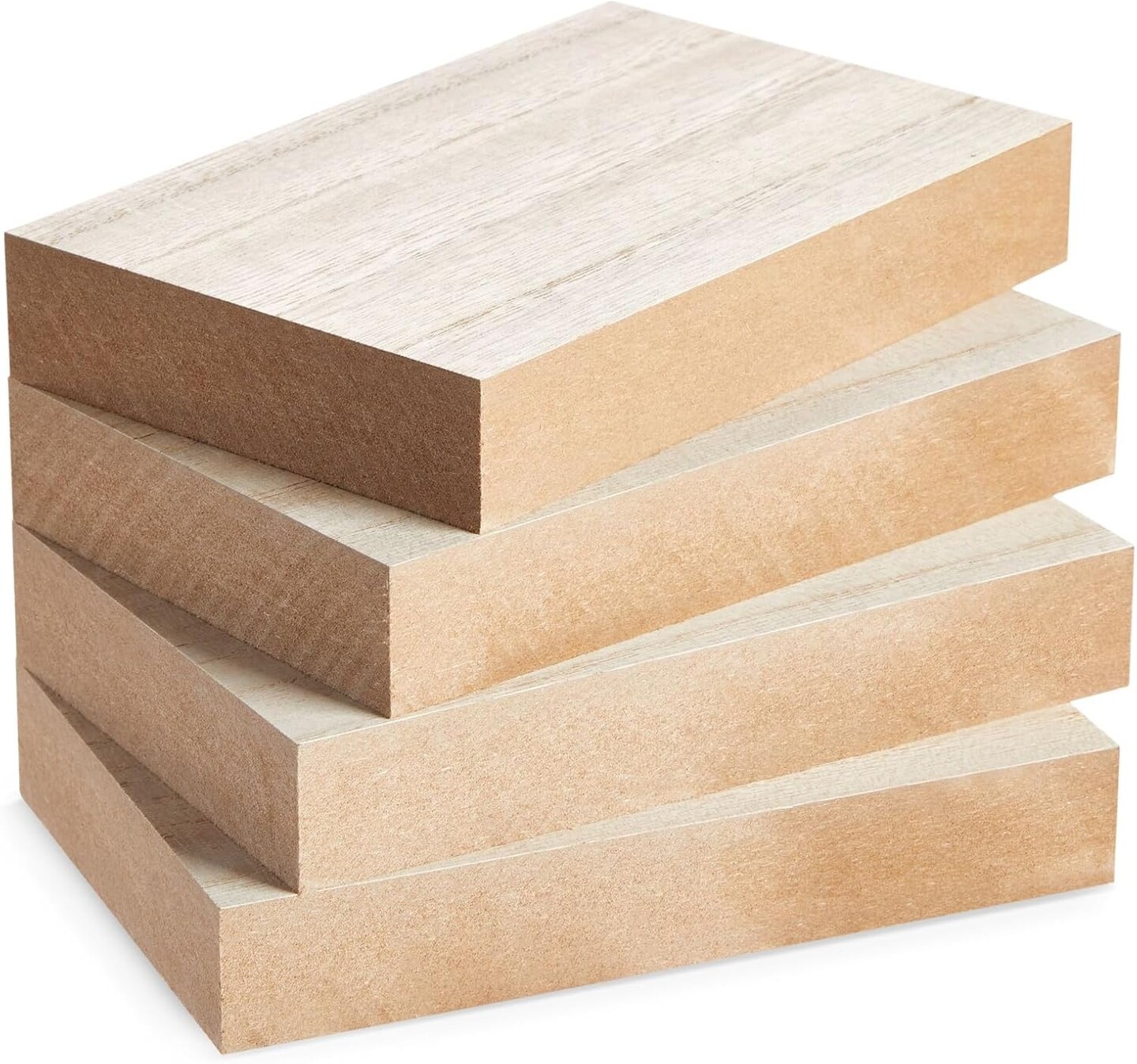 4 Pack Unfinished Wood Blocks for DIY 4 Pack, 6 x 4 x 1 in