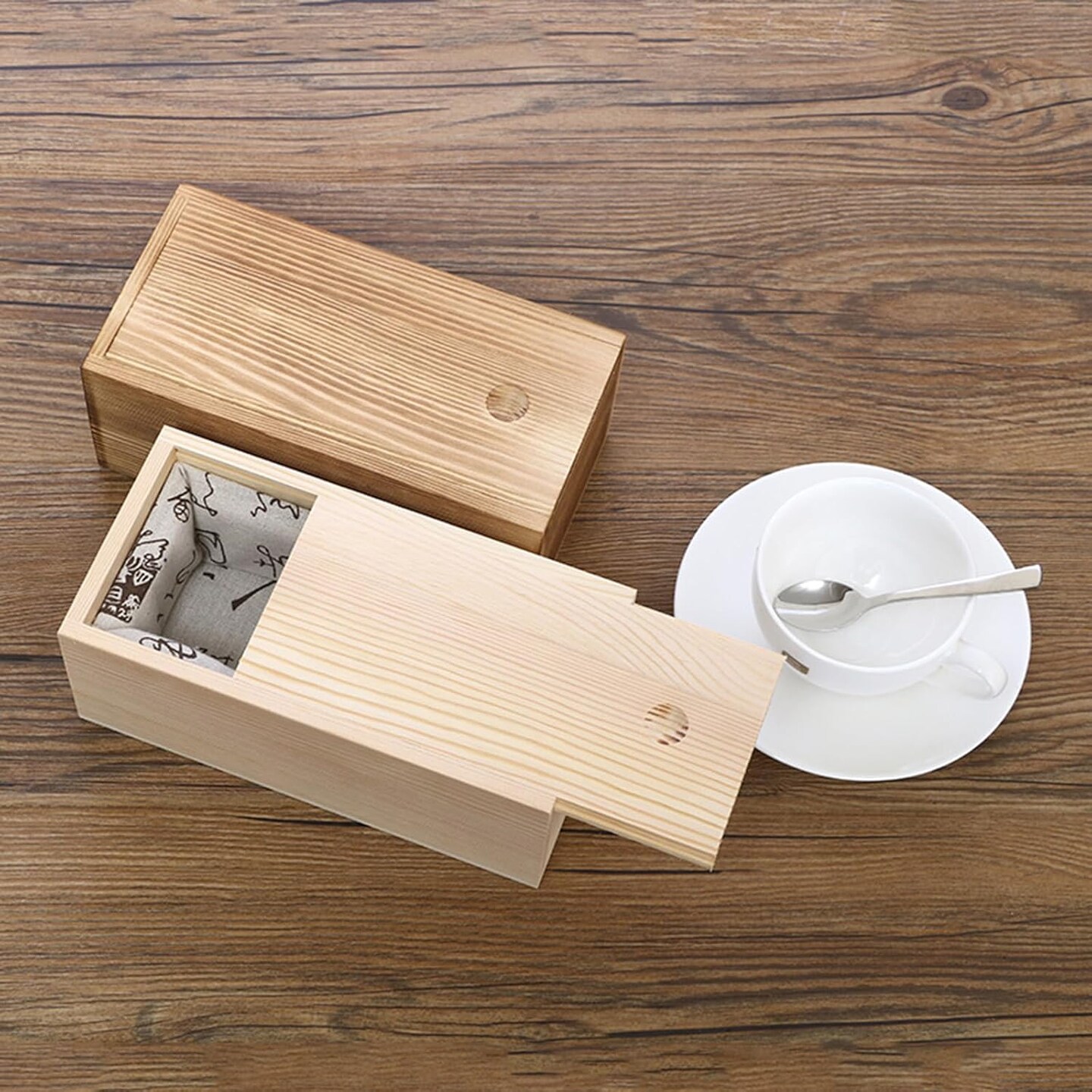 4 Pack Unfinished Wood Storage Box with Slide Lid, Vintage Keepsake Case Cards Container Small Gift Box for Art Hobbies, DIY Craft, Desktop Bead Organizer