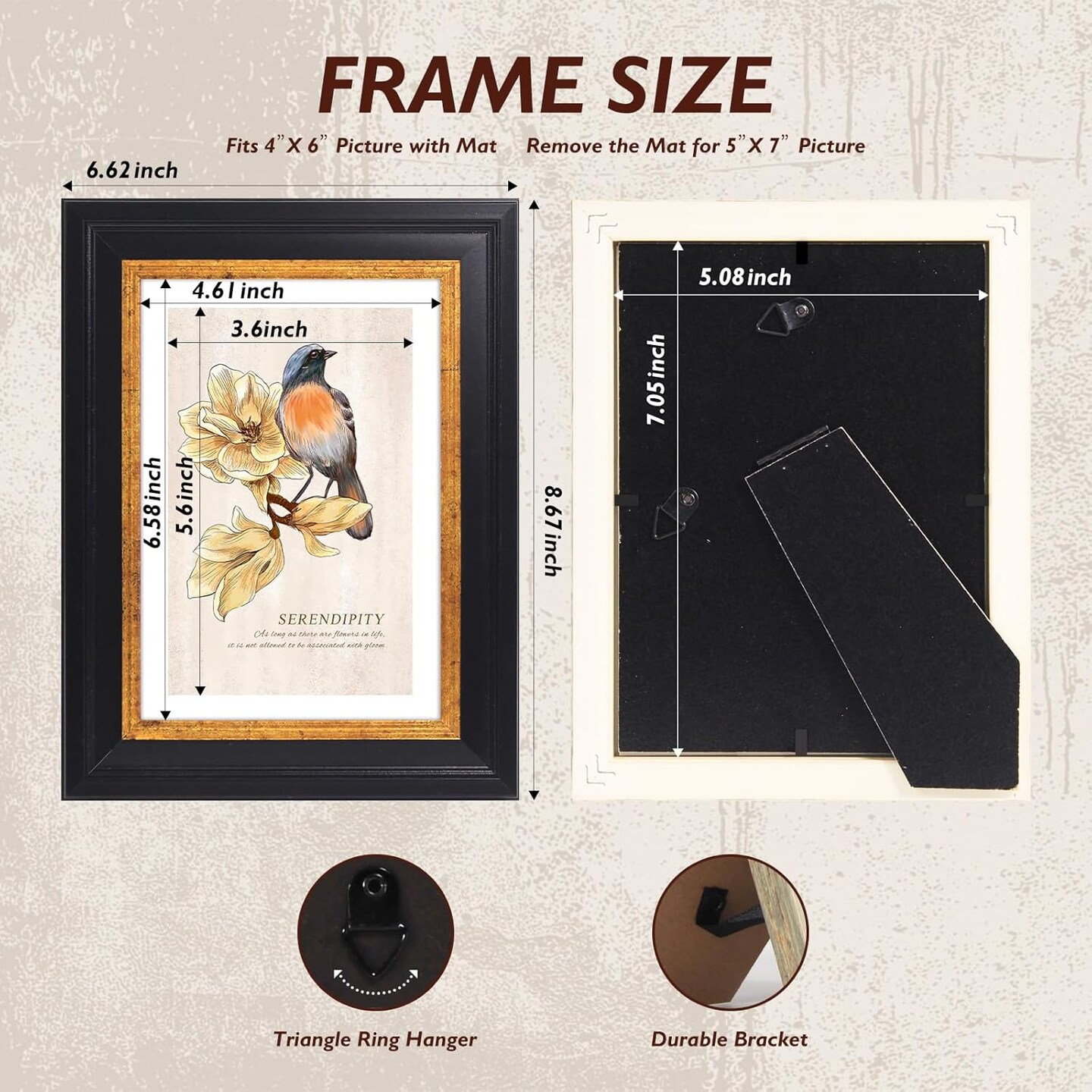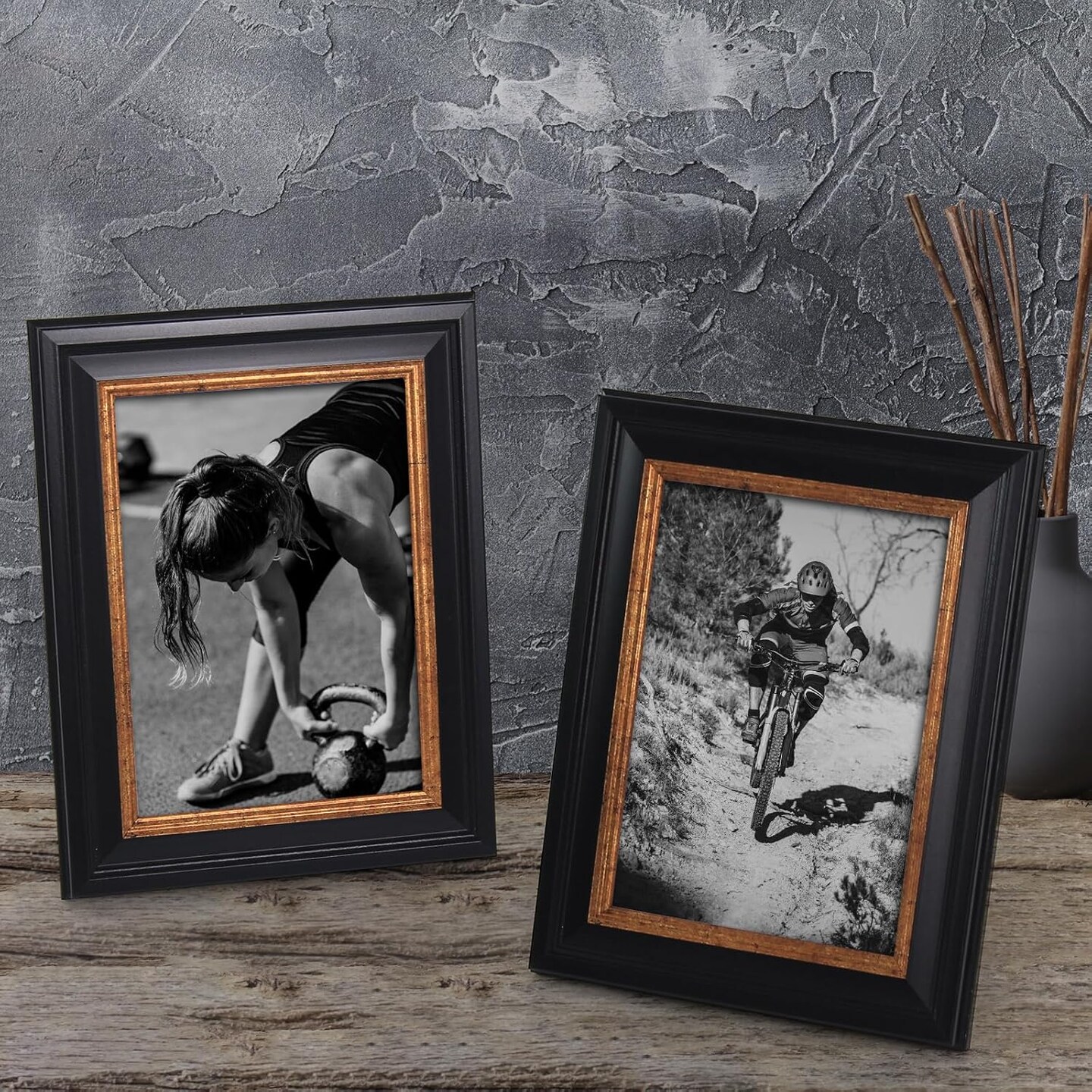 4 Pack Vintage Rustic 5x7 Picture Frame with Plastic Cover (Black)