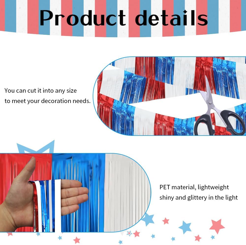4 Packs 10 Feet Long Foil Fringe 4th of July Garland