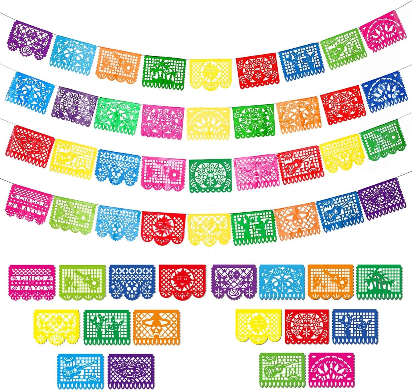 4 Packs Mexican Party Banner 60 Feet Fiesta Plastic Papel Picado Banner