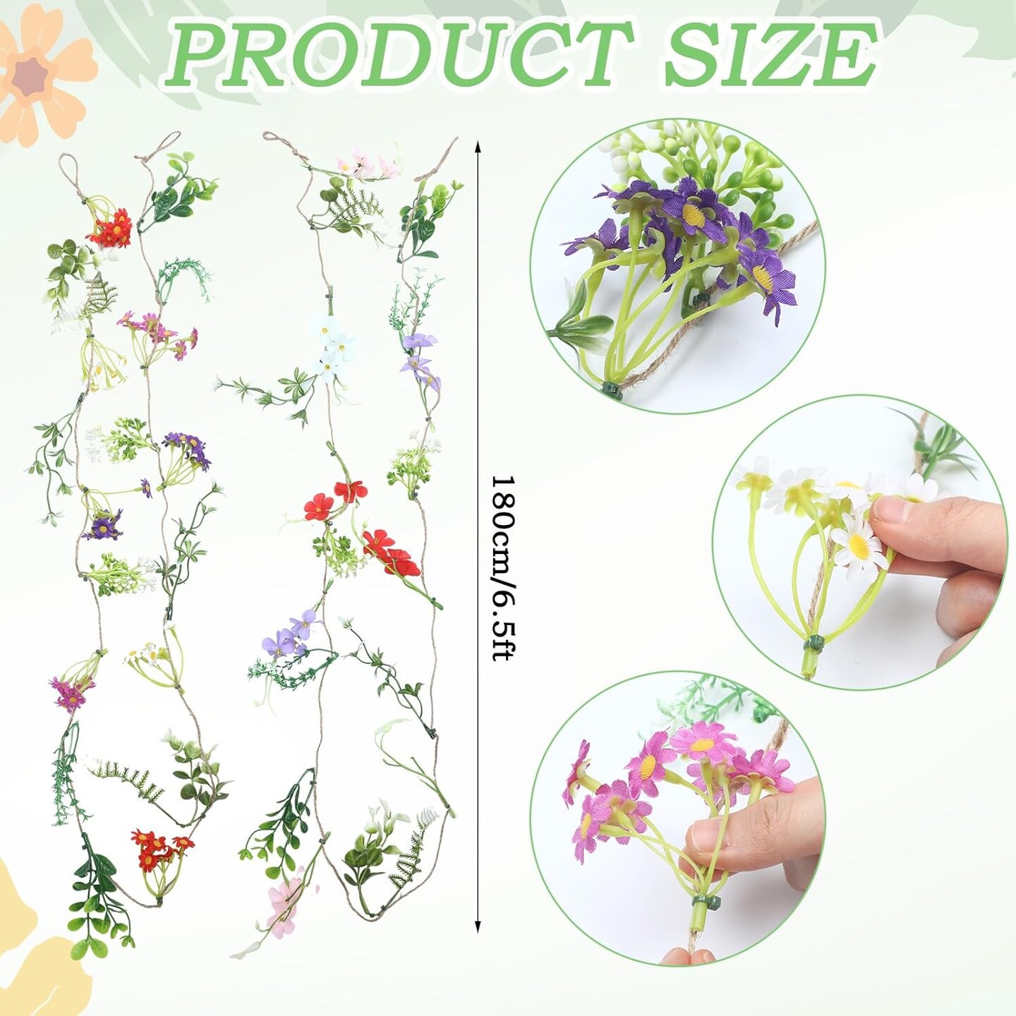 4 Pcs Artificial Wildflower Garland 6ft Faux Flower Hanging Vine Floral Garland Decorating for Room Wall Spring