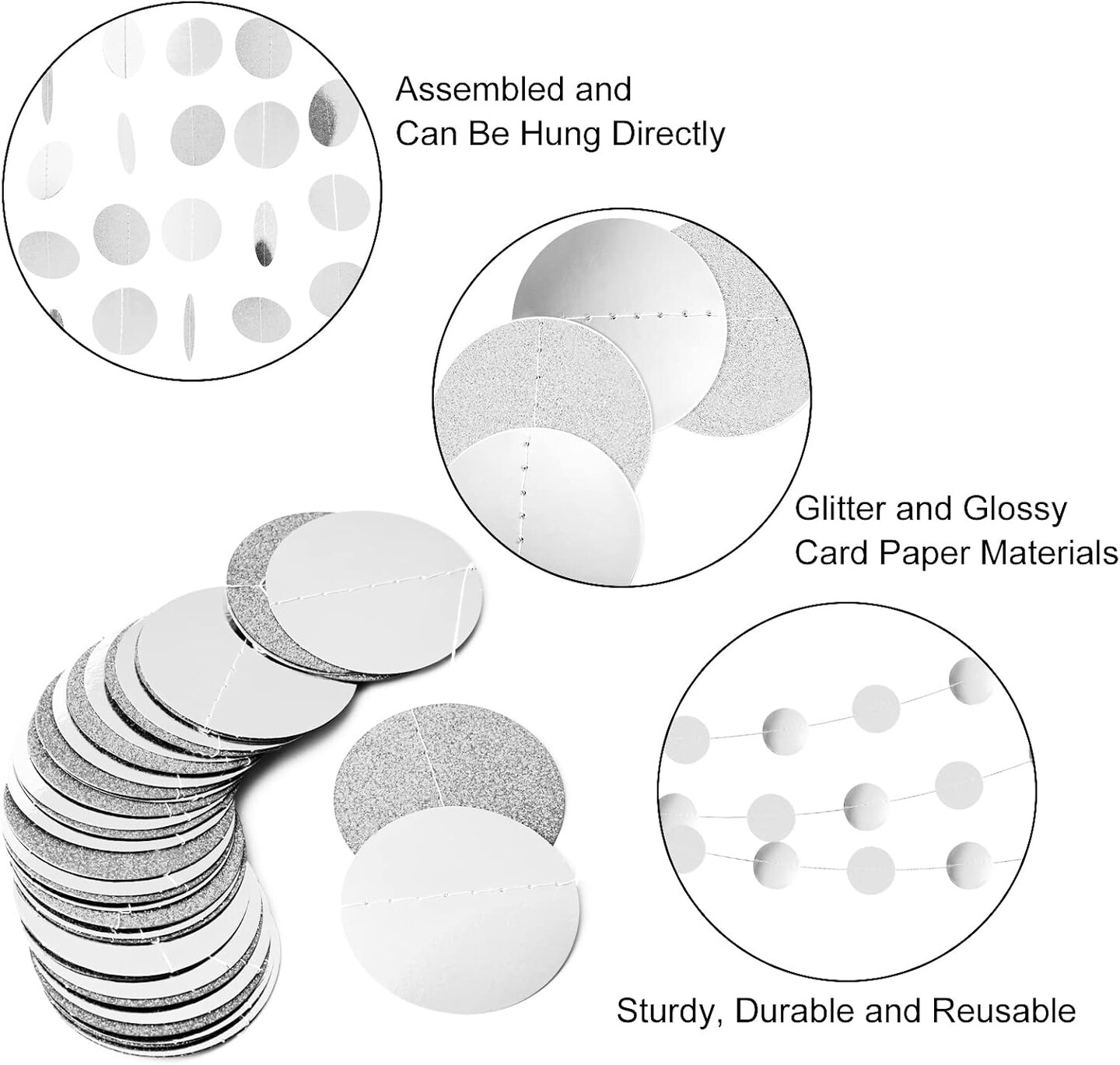 4 Pcs Circle Dots Garland 52 Feet Silver Decorations