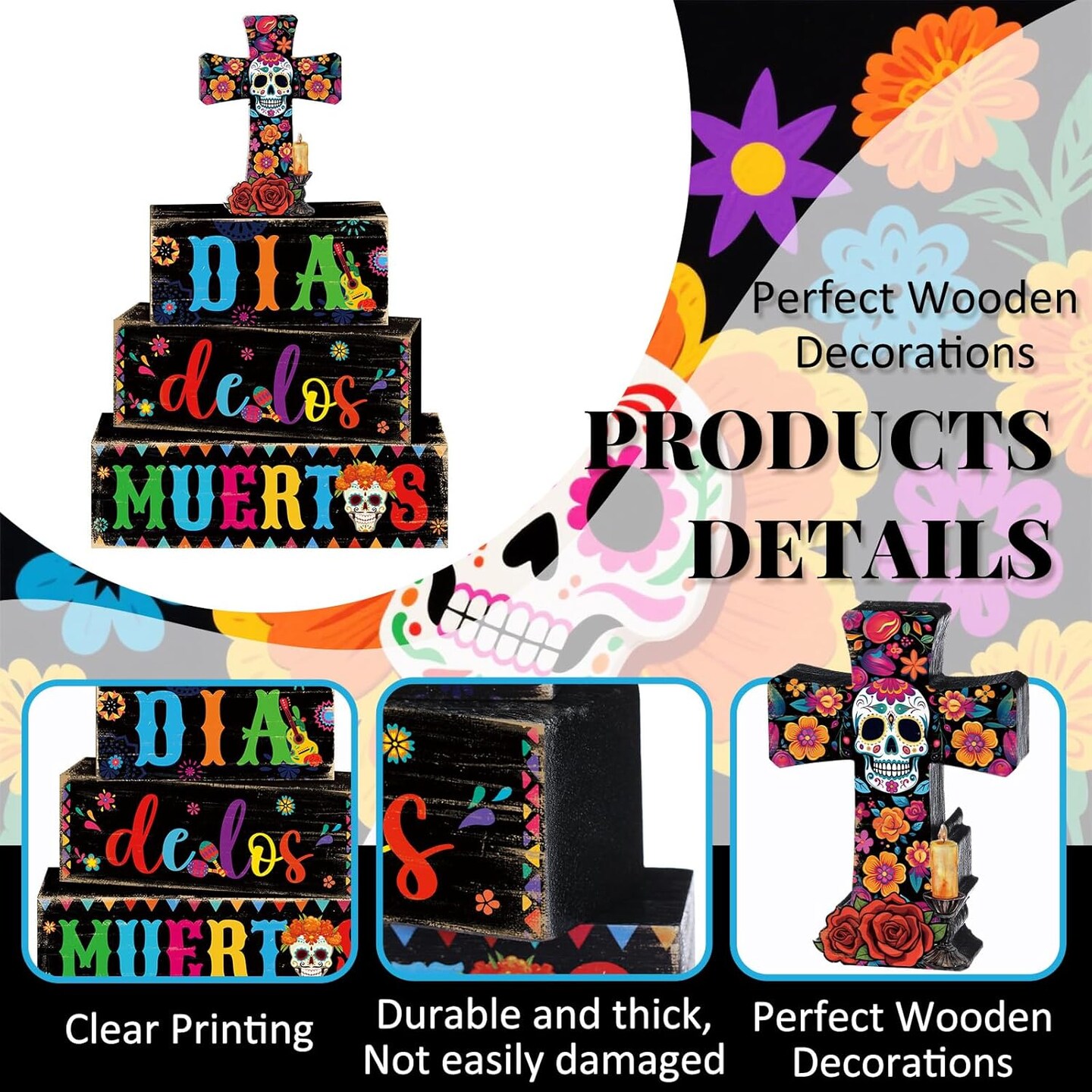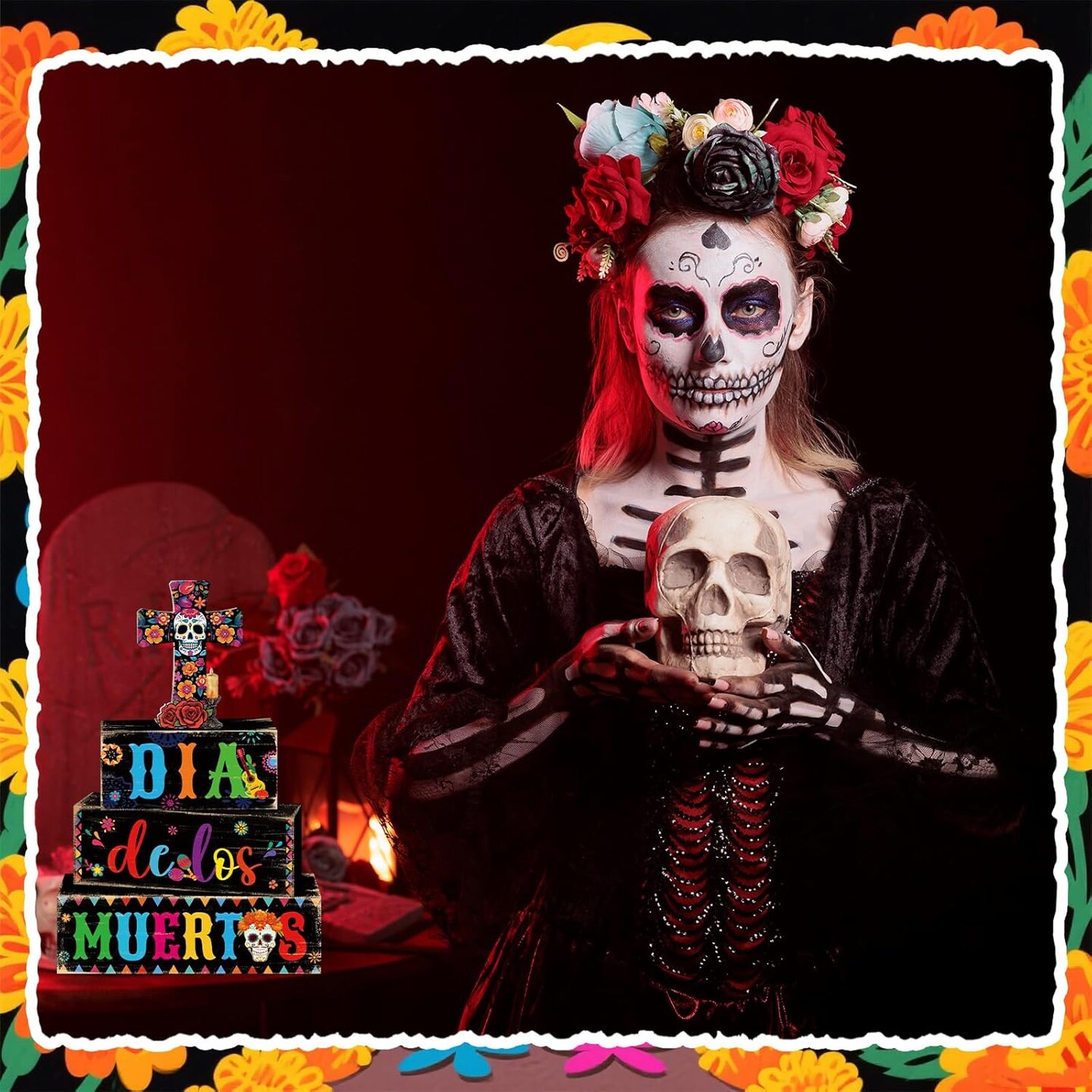 4 Pcs Day of The Dead Table Decorations Day of The Dead Centerpiece for Table Dia De Los Muertos Tiered Tray Decor