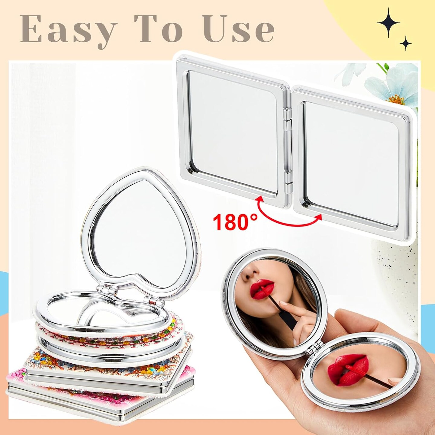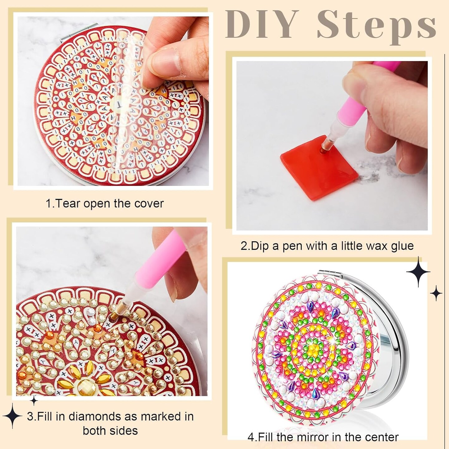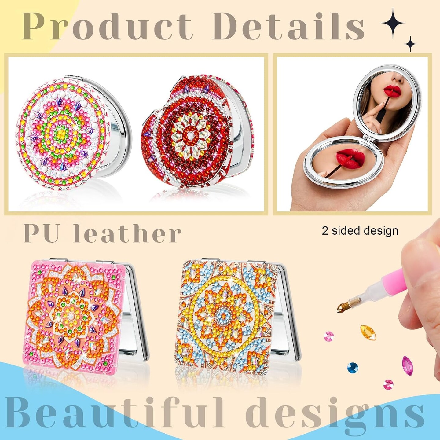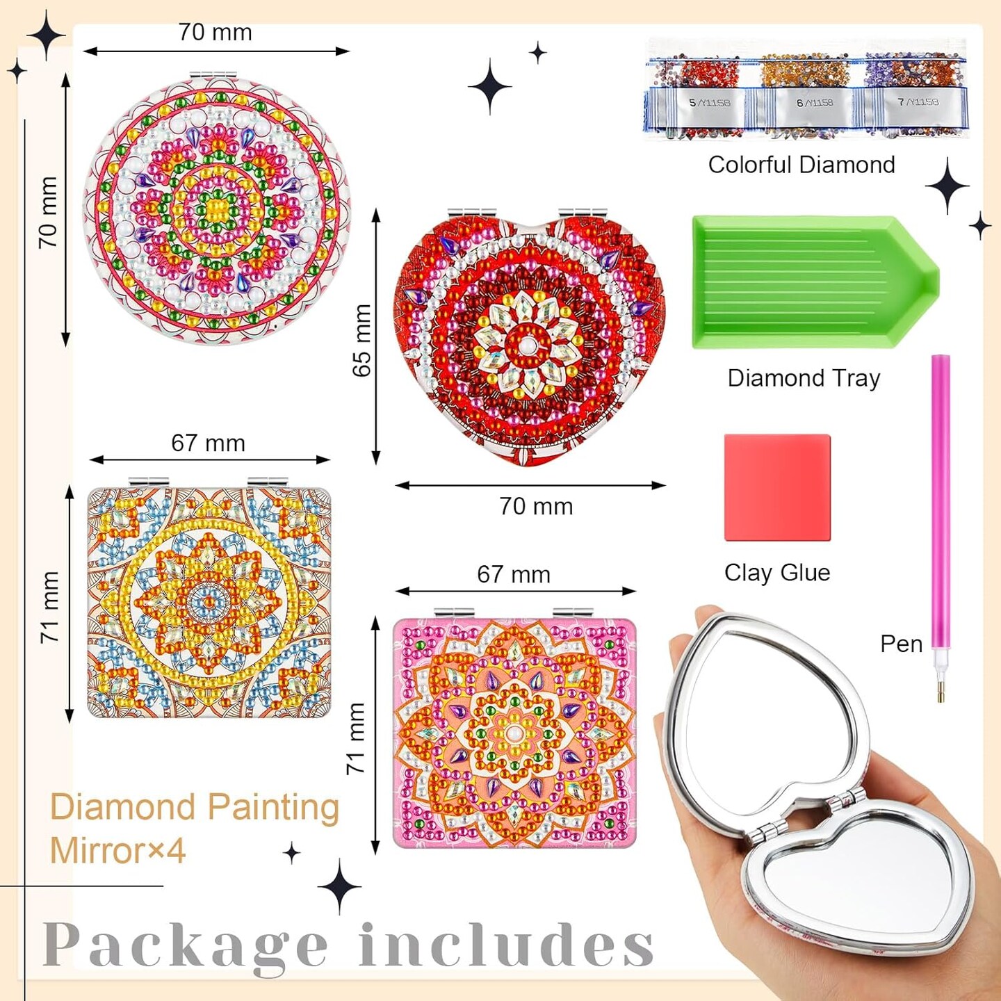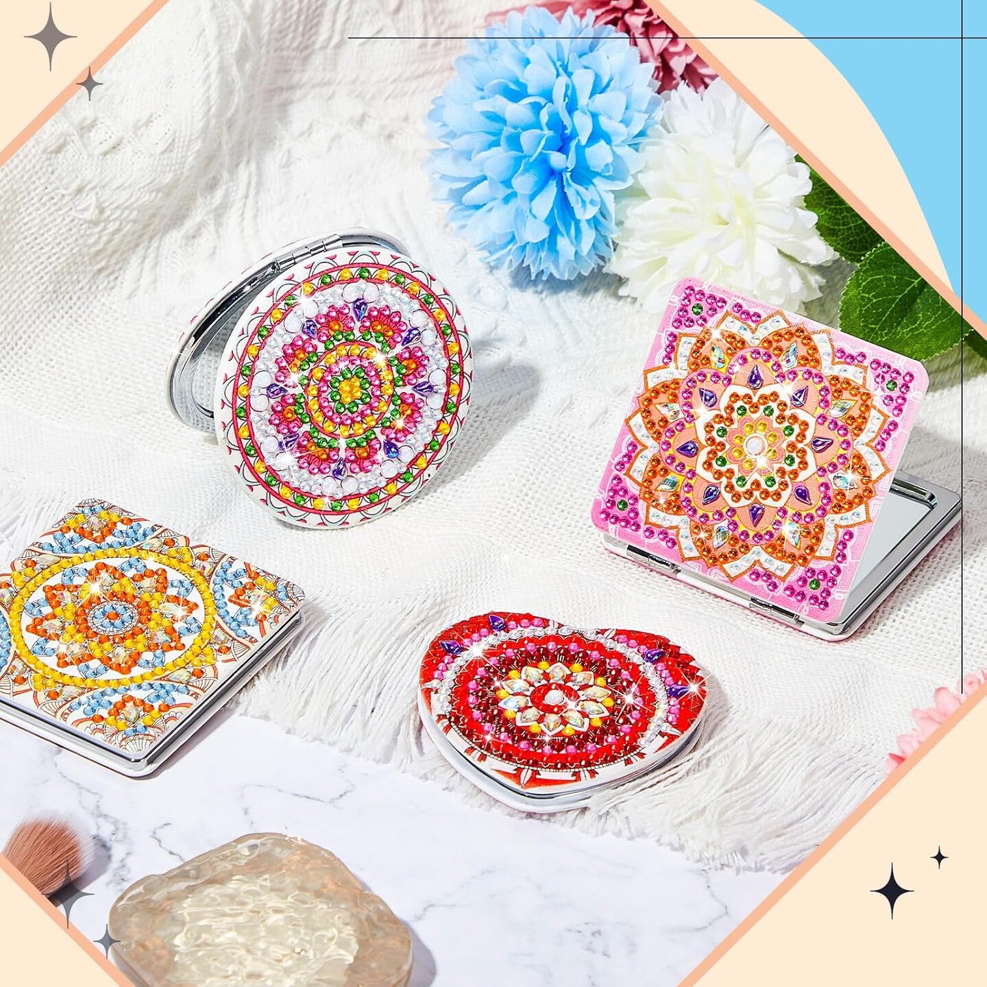 4 Pcs Diamond Painting Compact Mirror DIY Painting Pocket Portable Folding Purse Mirror for Women Diamond Art Mom Gifts for Mother's Day Nurse Week Party Favors(Bright Mandala)