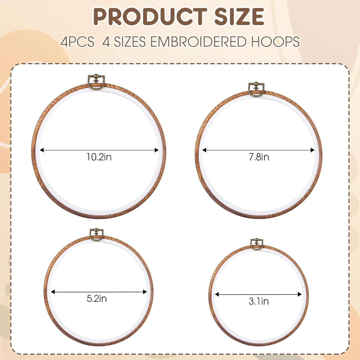 4 Pcs Round Embroidery Hoops Set-Decorative Cross Stitch Hoop Ring (4 Different Size)