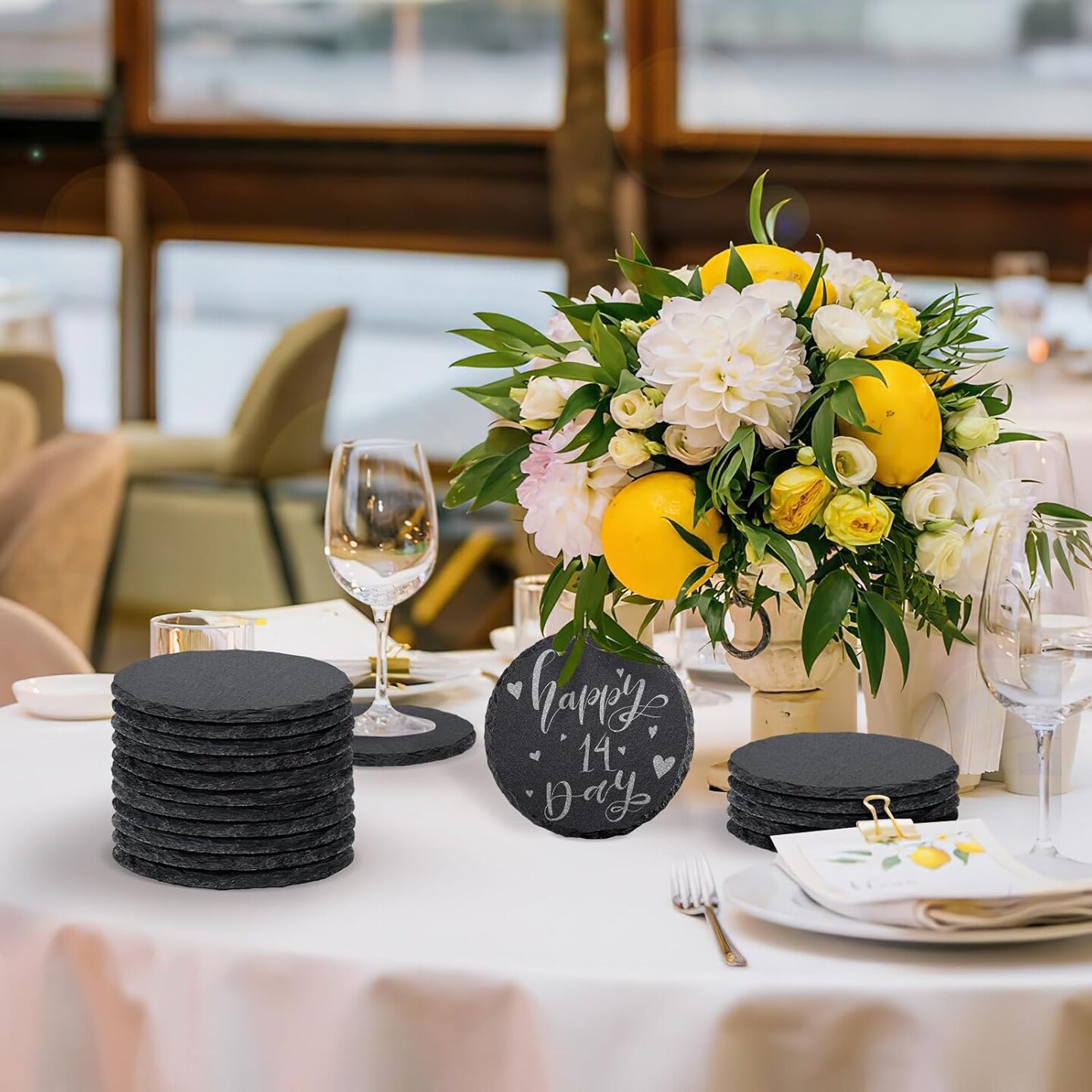 4 PCS Round Slate Drink Coasters Set