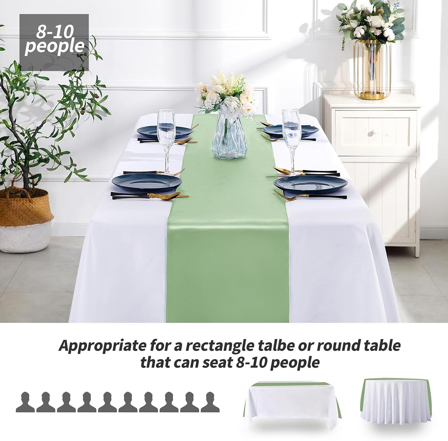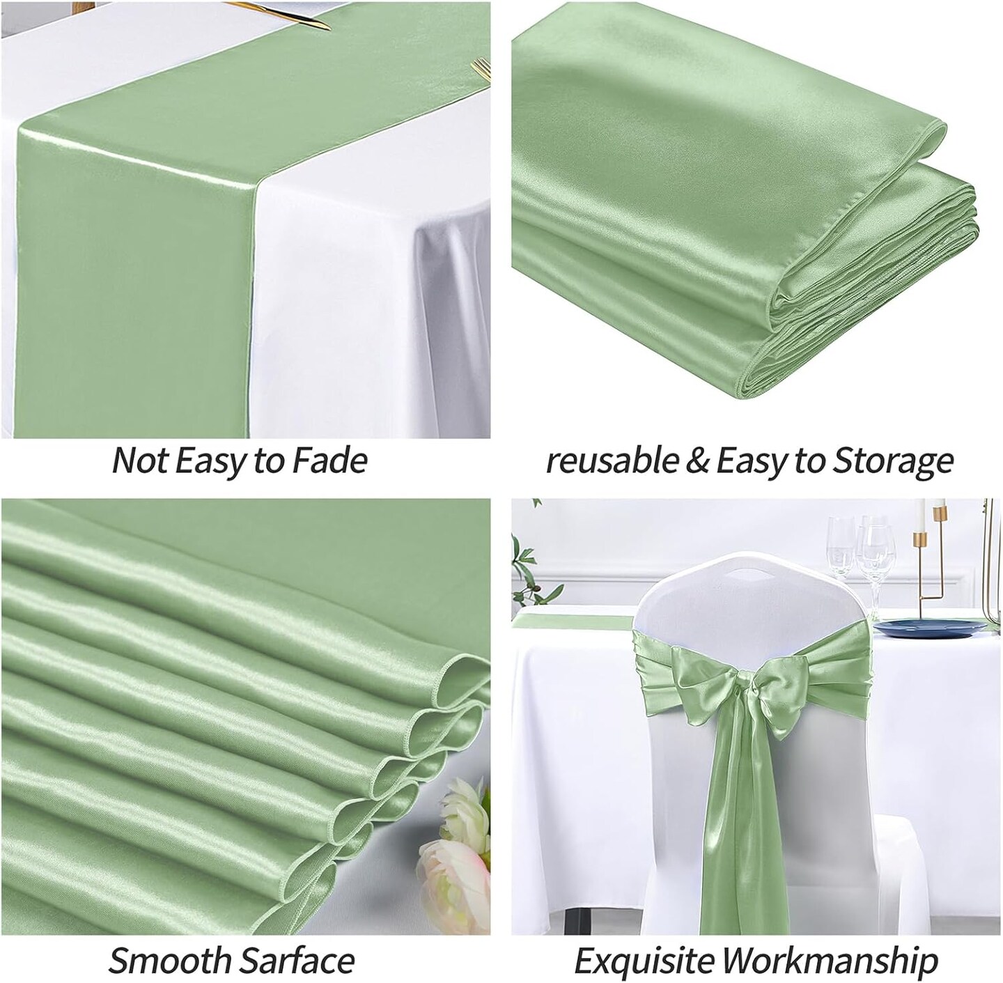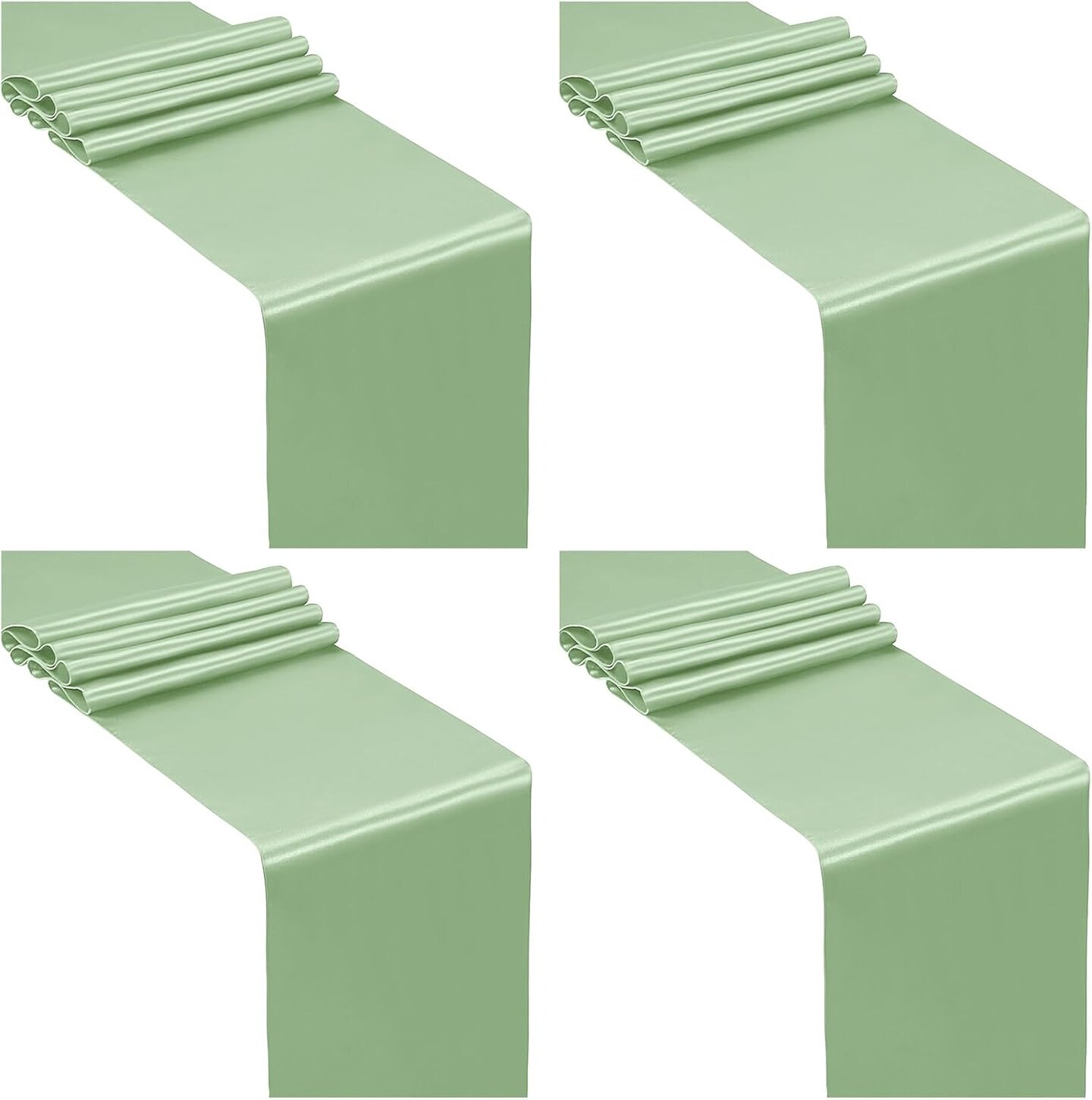 4 Pcs Sage Green Satin Table Runner