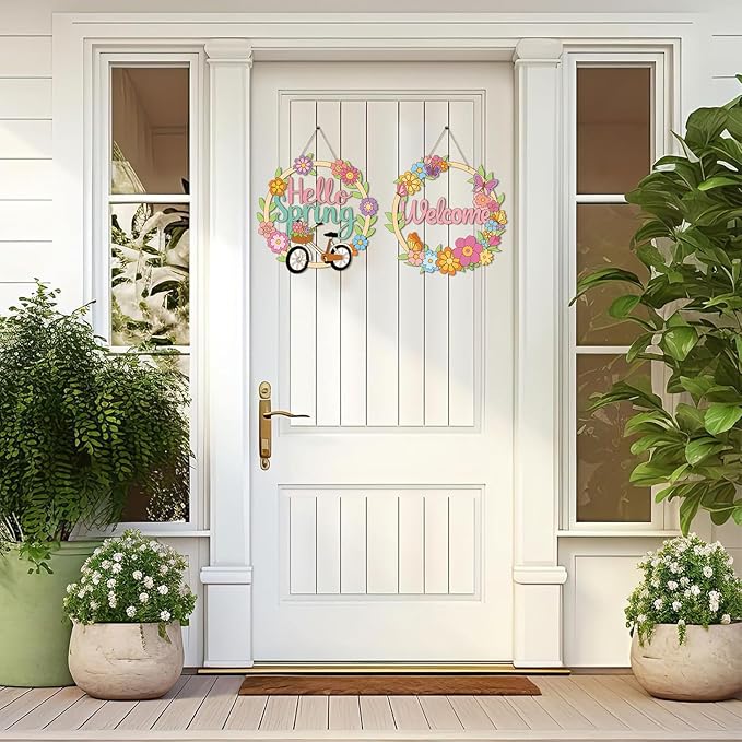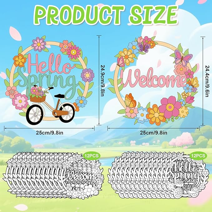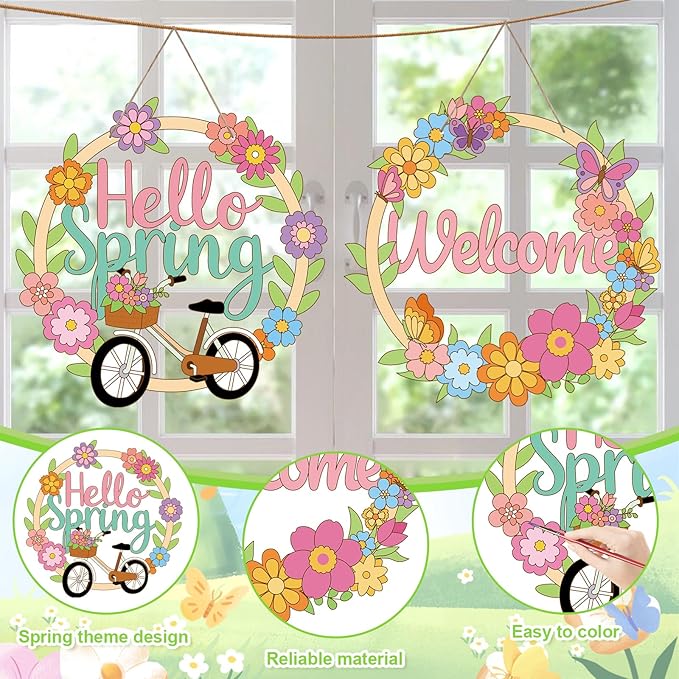 4 Pcs Spring Coloring Wreath Crafts, Color Your Own Flower Crafts, DIY Paper Wreath for Spring Home Activities Games. (Spring.24)