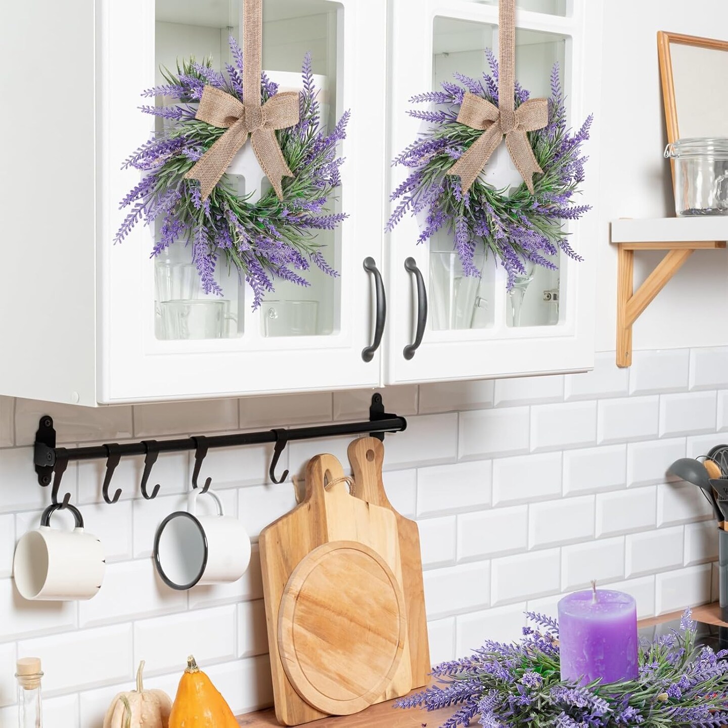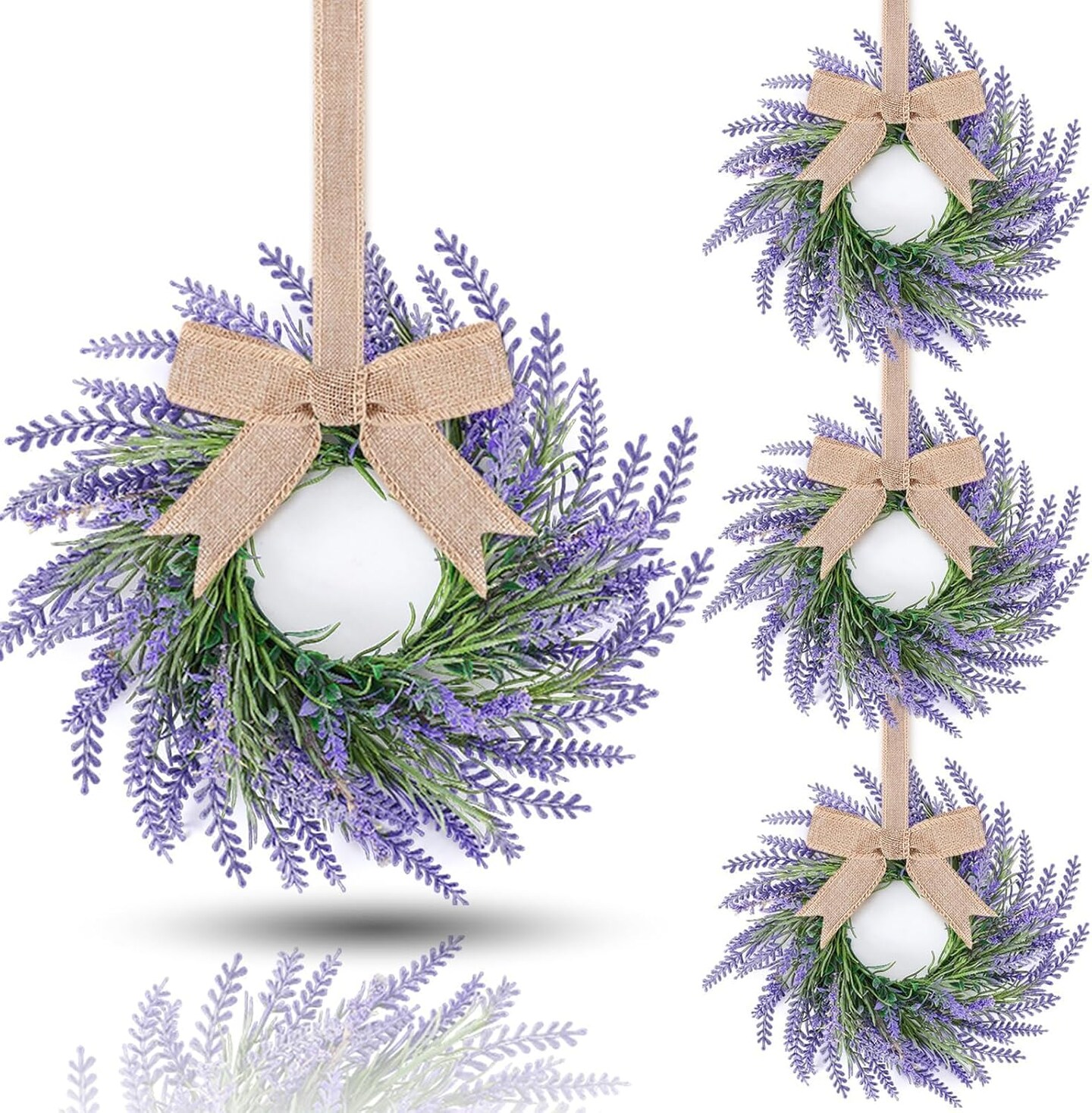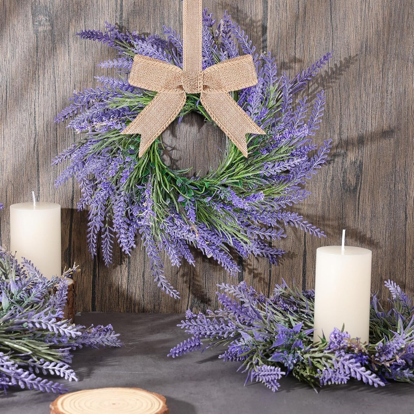 4 PCS Summer Wreath for Front Door Lavender Candle Ring Wreaths Mini Purple Table Centerpieces 9 Inch Floral Wreaths