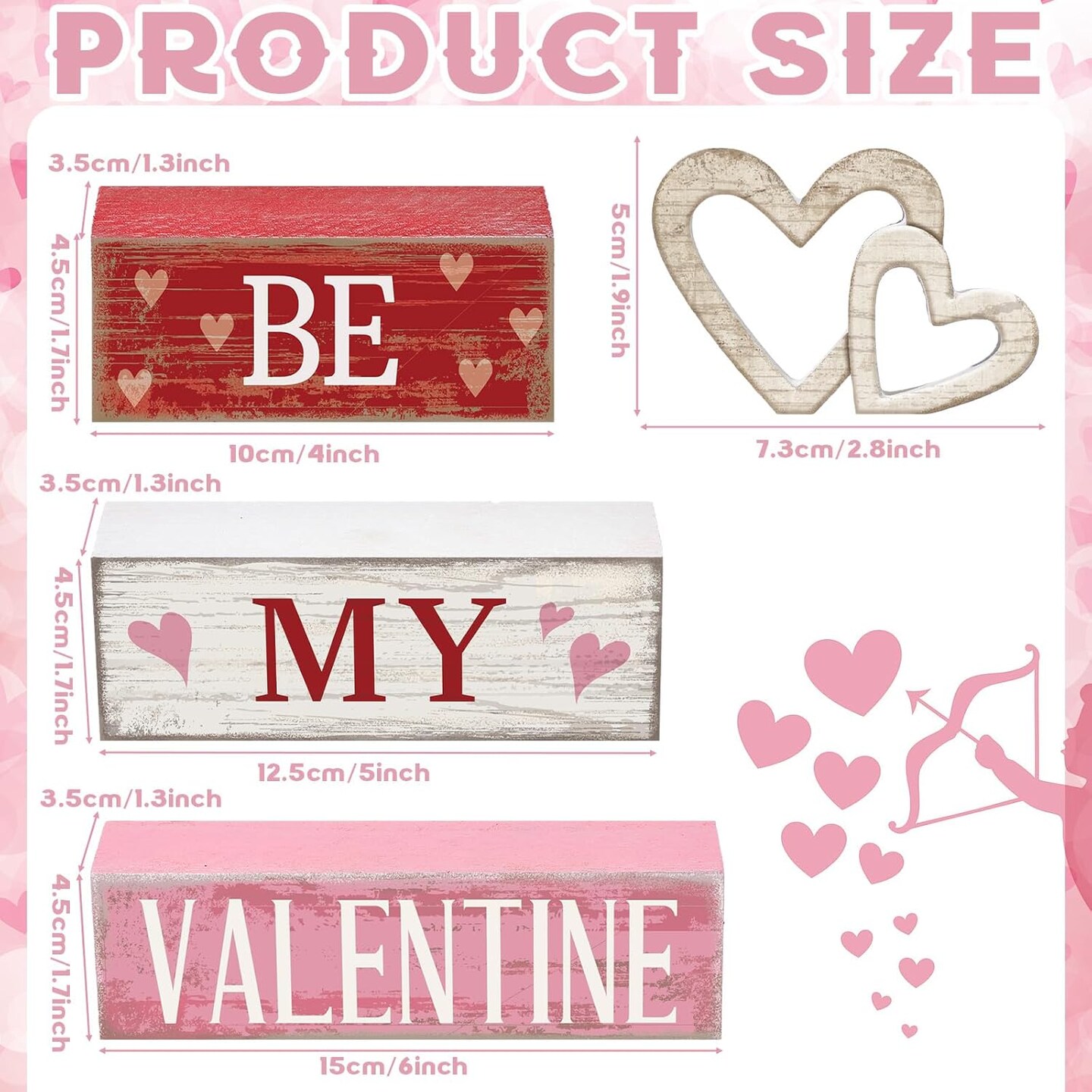 4 PCS Valentine Wooden Sign Love Table Centerpiece Faux Book Stack Decor