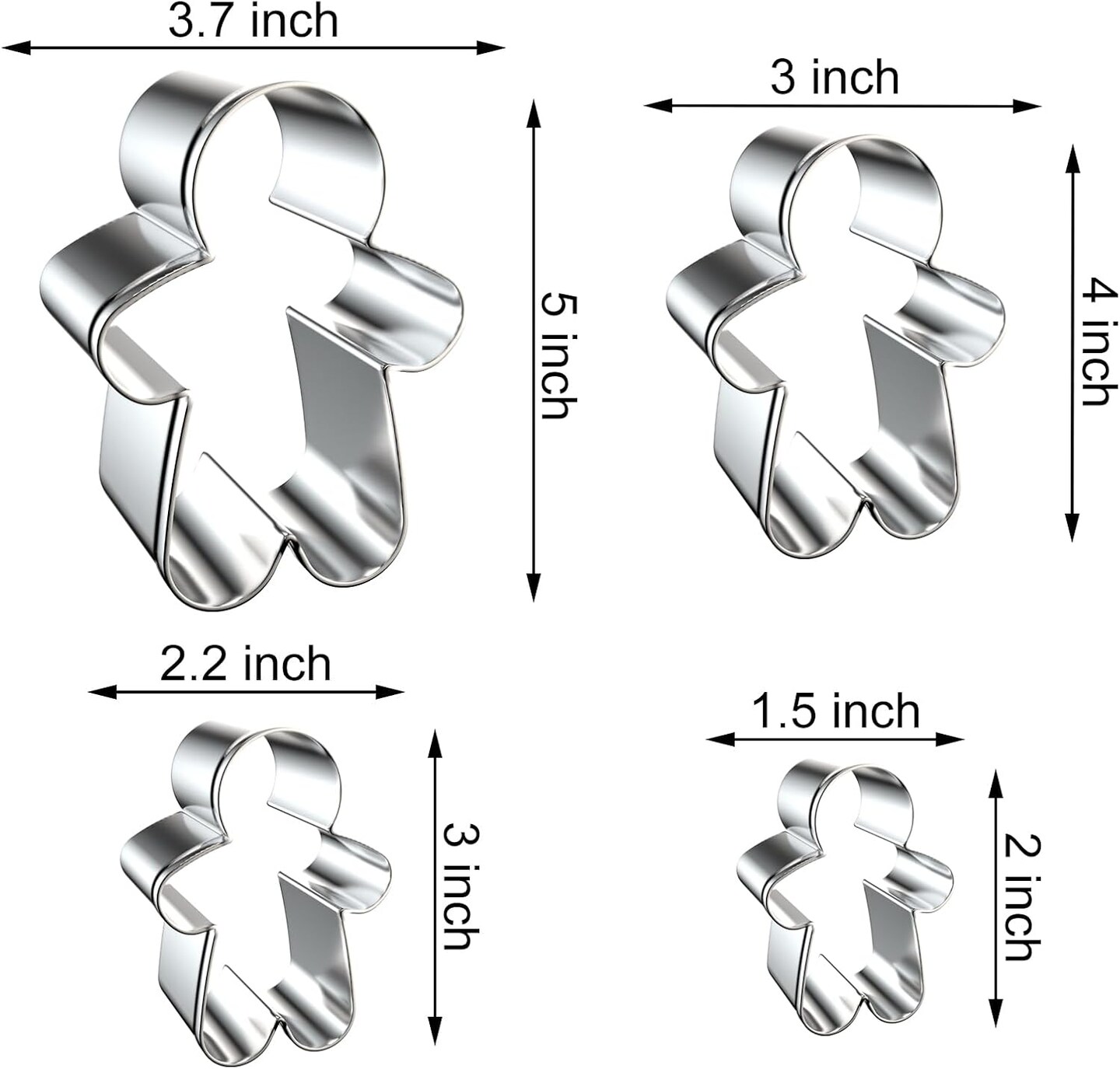 4 Piece Christmas Gingerbread Boy Cookie Cutters Shapes Molds - Stainless Steel
