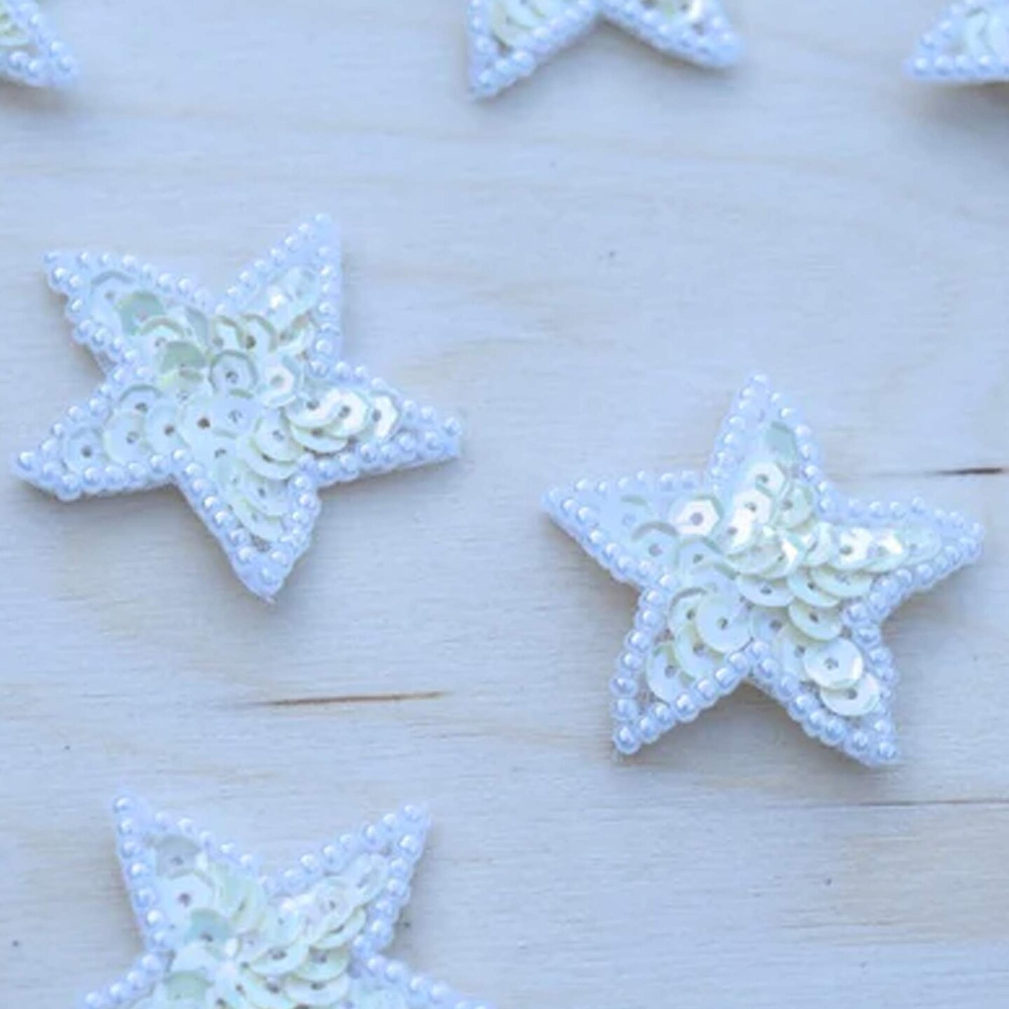 4 Pieces 0.75" White Beaded Sequin Star Patches for DIY Crafts Jackets Clips Accessories