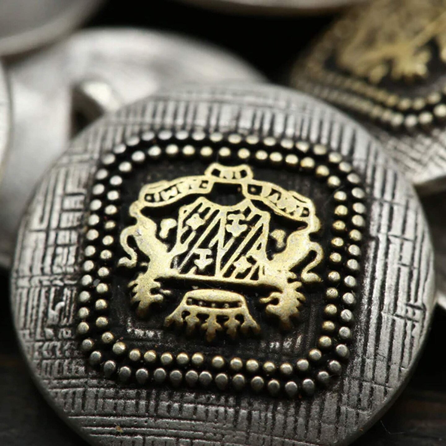 4 Pieces Antique Gold and Silver Scratched Effect Shank Metal Buttons 13/16 Inch