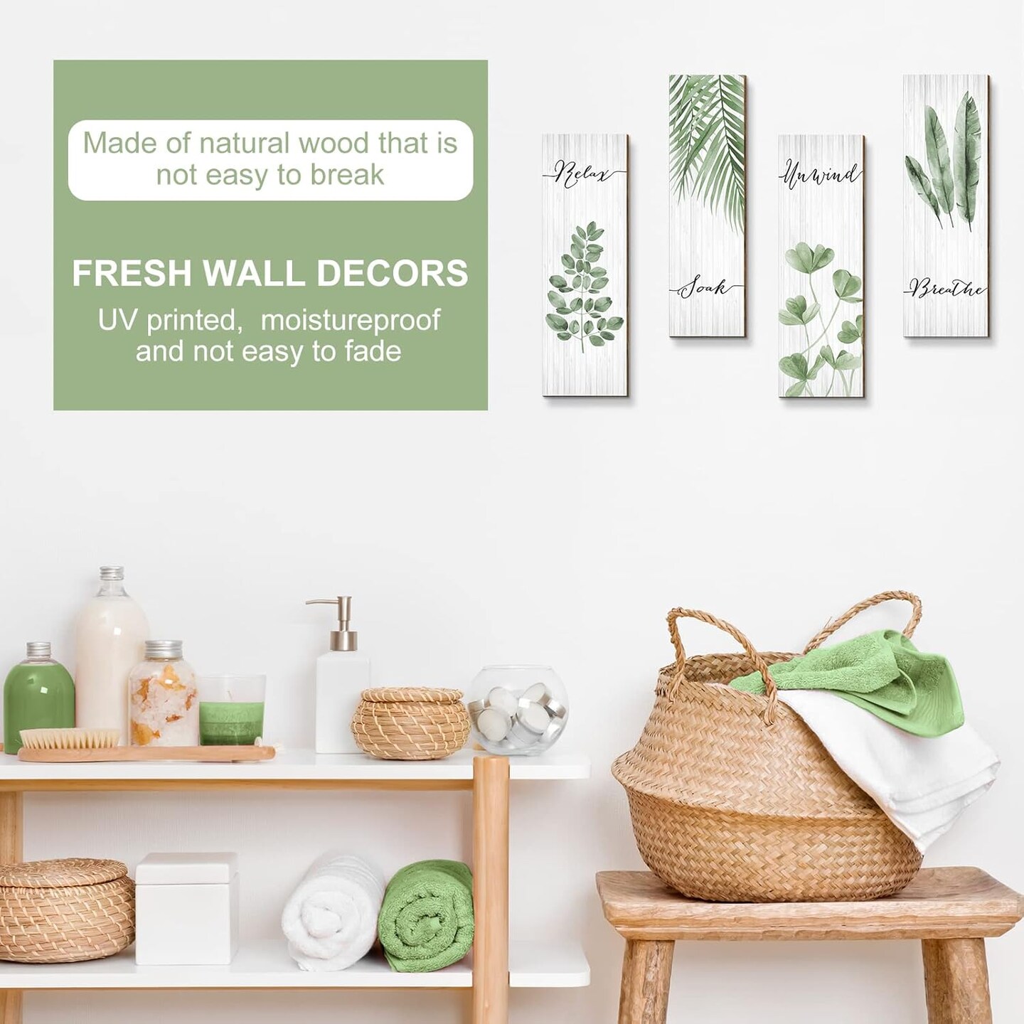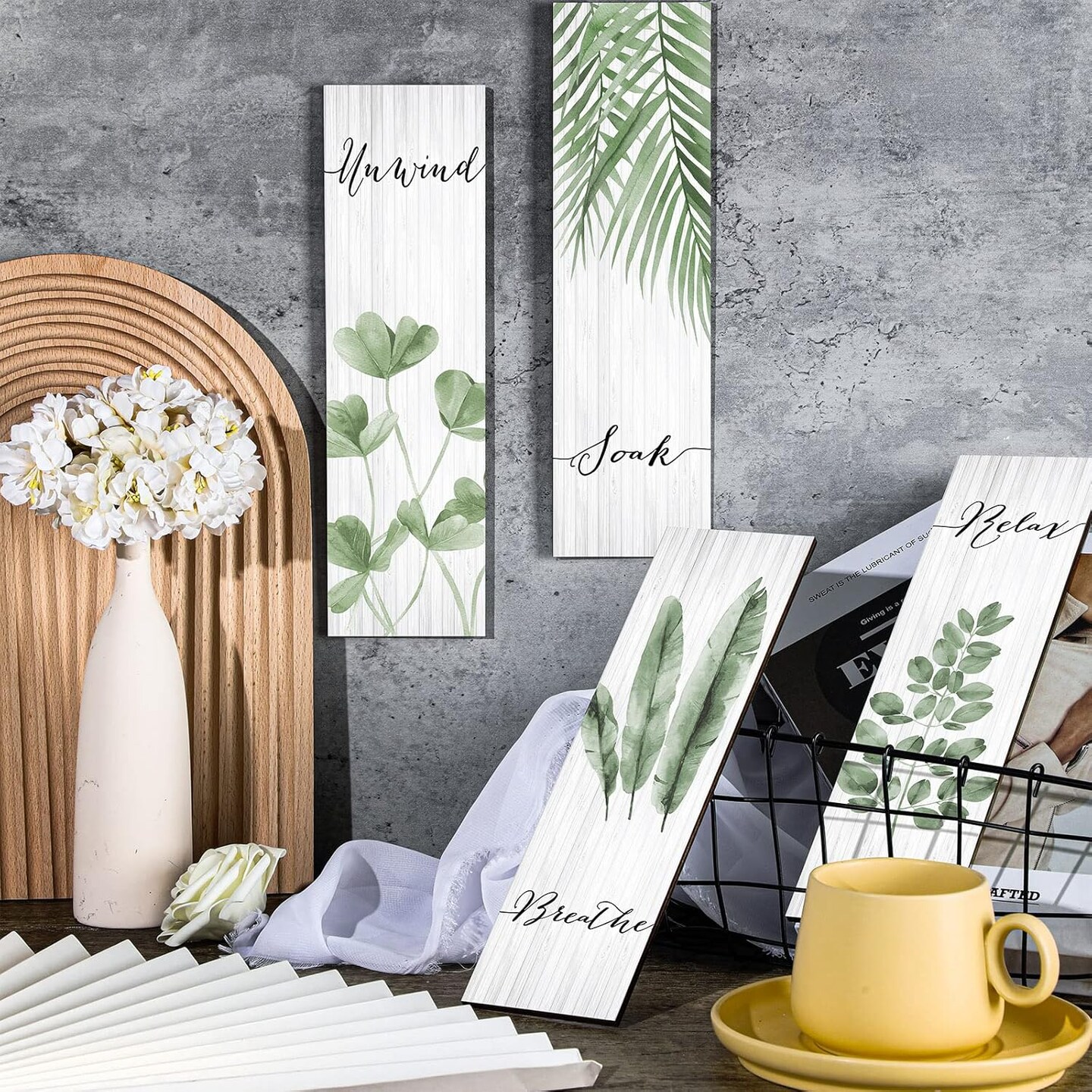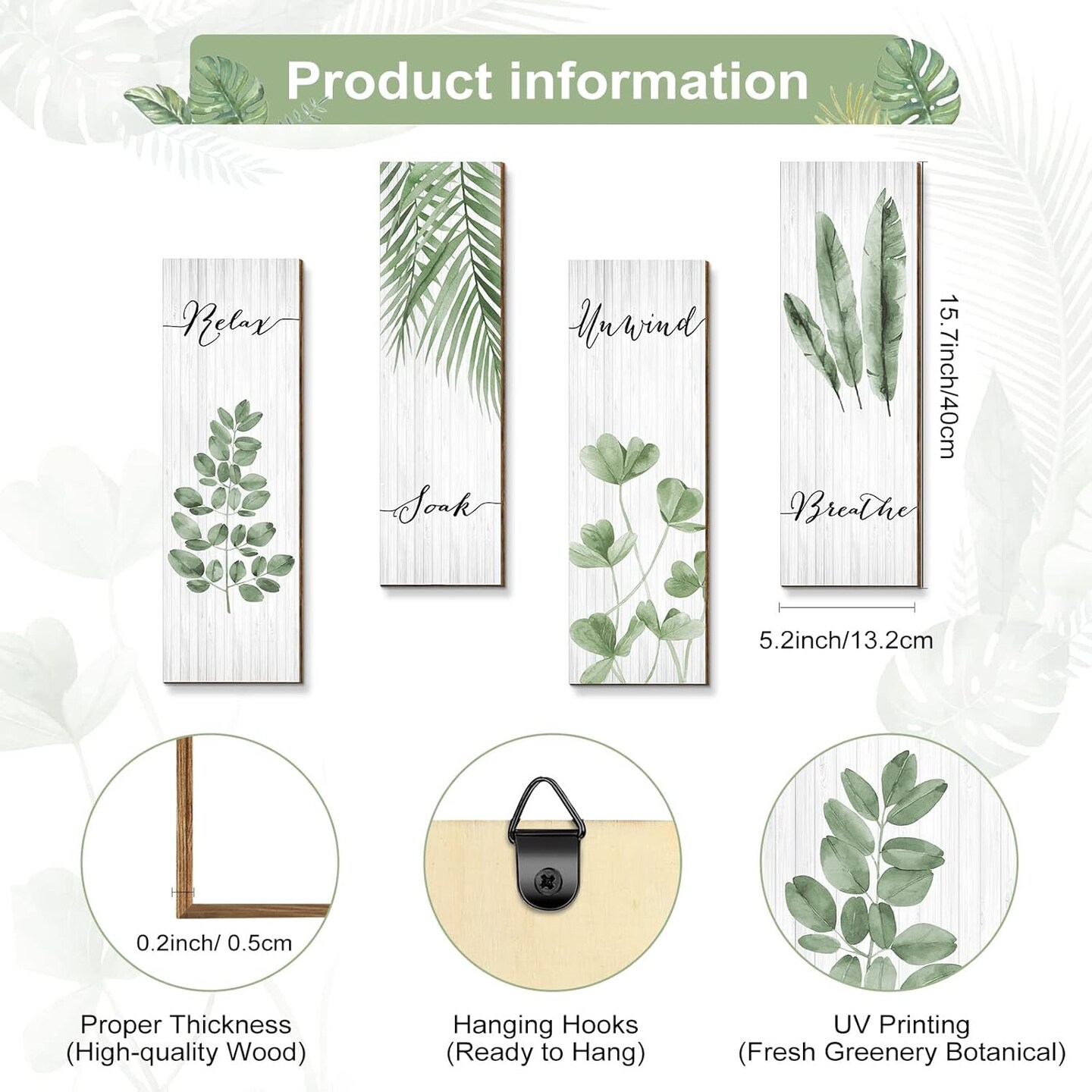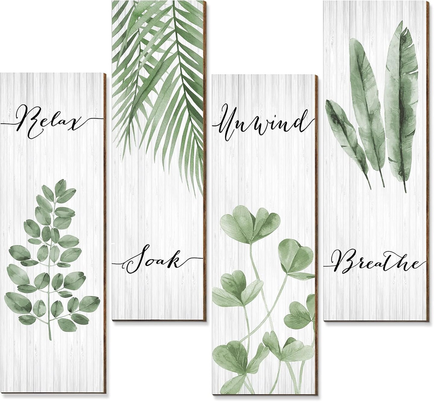 4 Pieces Boho Leaf Art Wall Decor 15.7 x 5.2 Inches (Green)