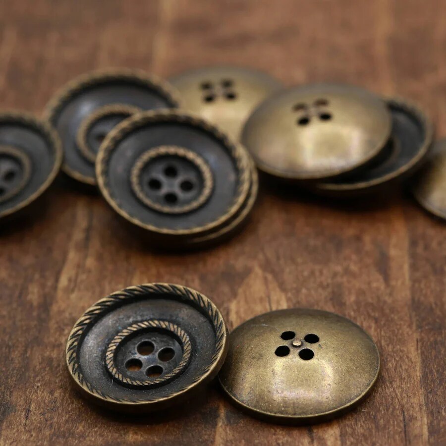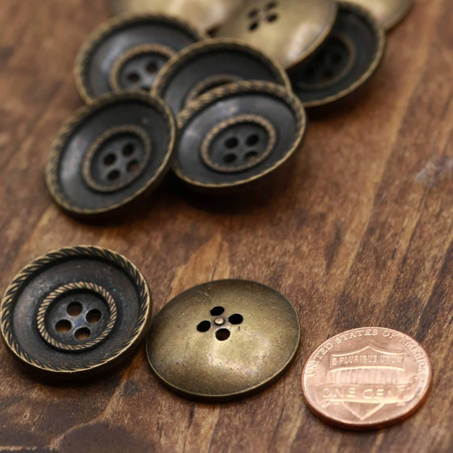 4 Pieces Brass Basket Weaver Design Metal Buttons 15/16 Inch