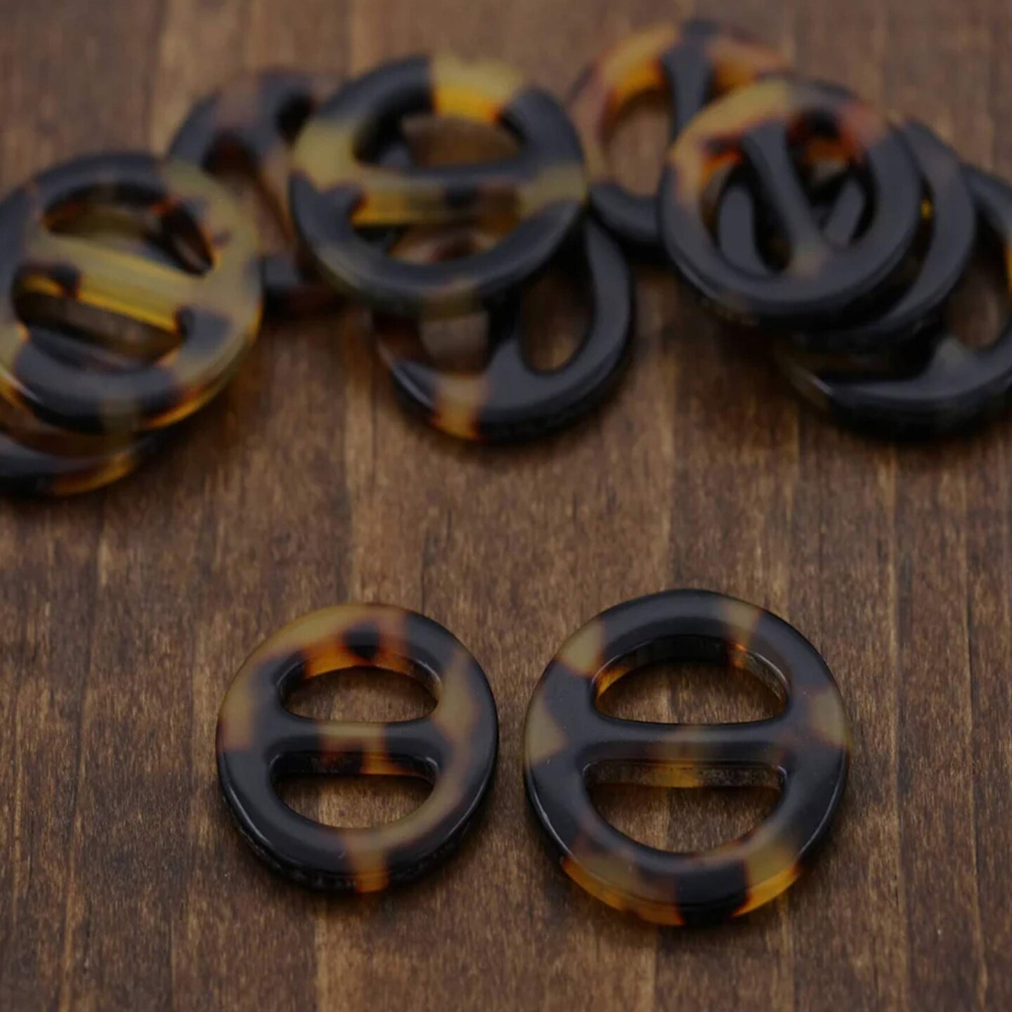 4 Pieces Brown Plastic Round Slider Buckle for Accessories Small 15mm Tortoise Hardware