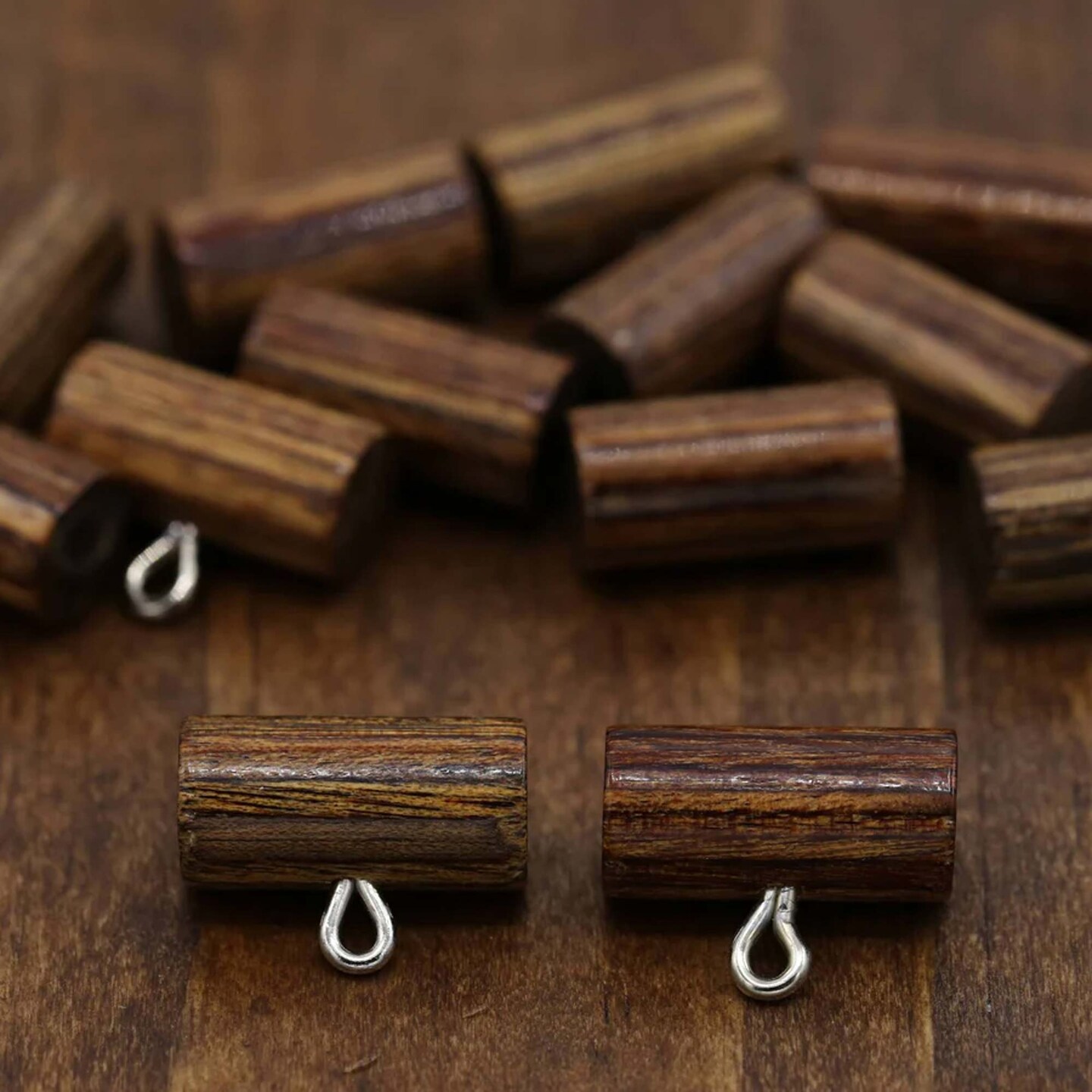 4 Pieces Brown Wooden Plastic Toggle Buttons with Metal Loop 3/4" Hook Style