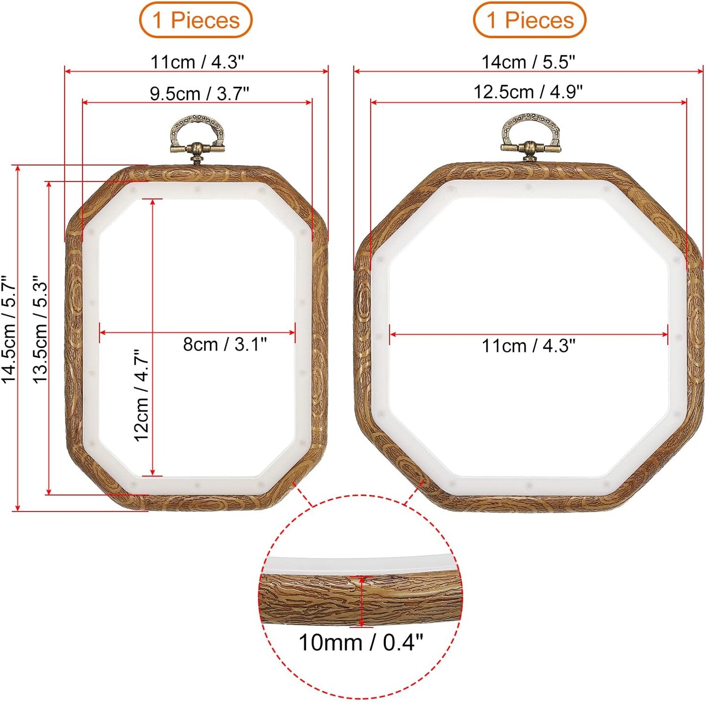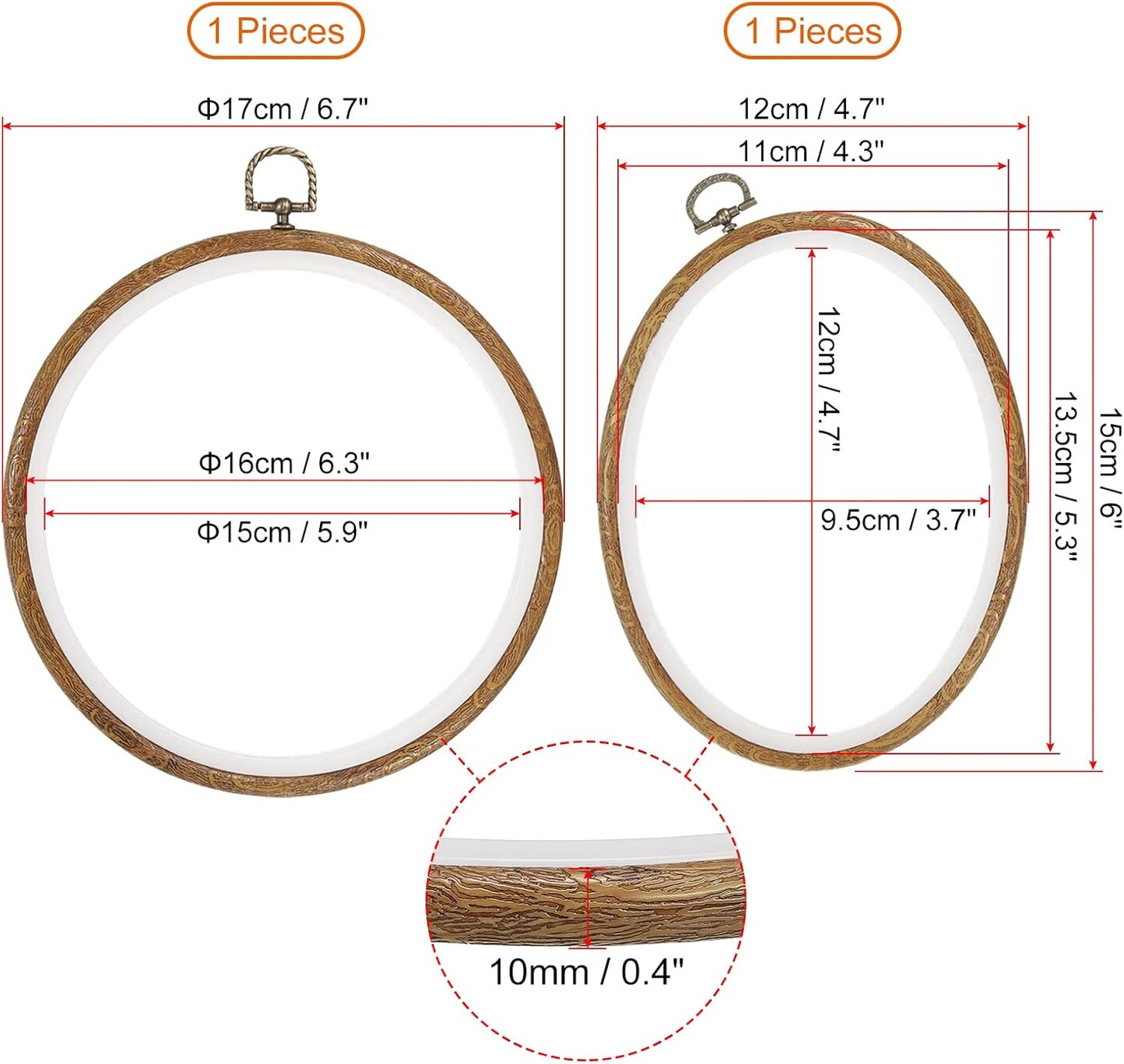 4 Pieces Embroidery Hoops Set Imitated Wood Frame Circle Oval