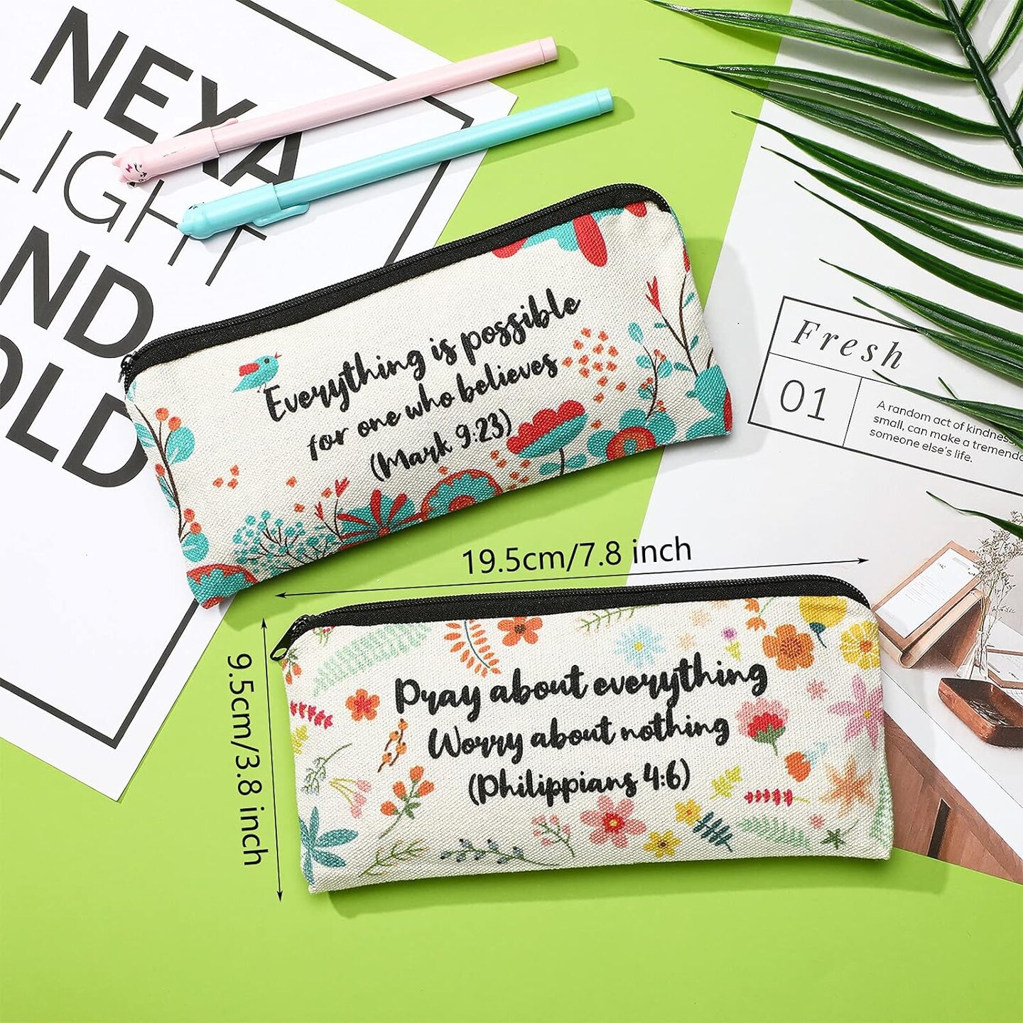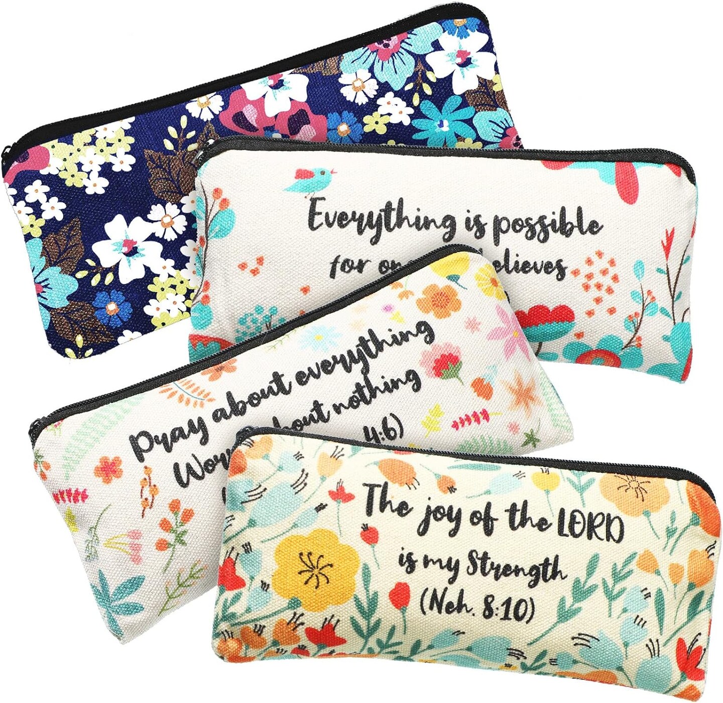 4 Pieces Inspirational Bible Verse Pencil Pouch Christian Pencil Case Scripture Makeup Bags Canvas Cosmetic Bags for Students Office Journaling Supplies (Bible Verse Pattern,7.8 x 3.8 Inch)
