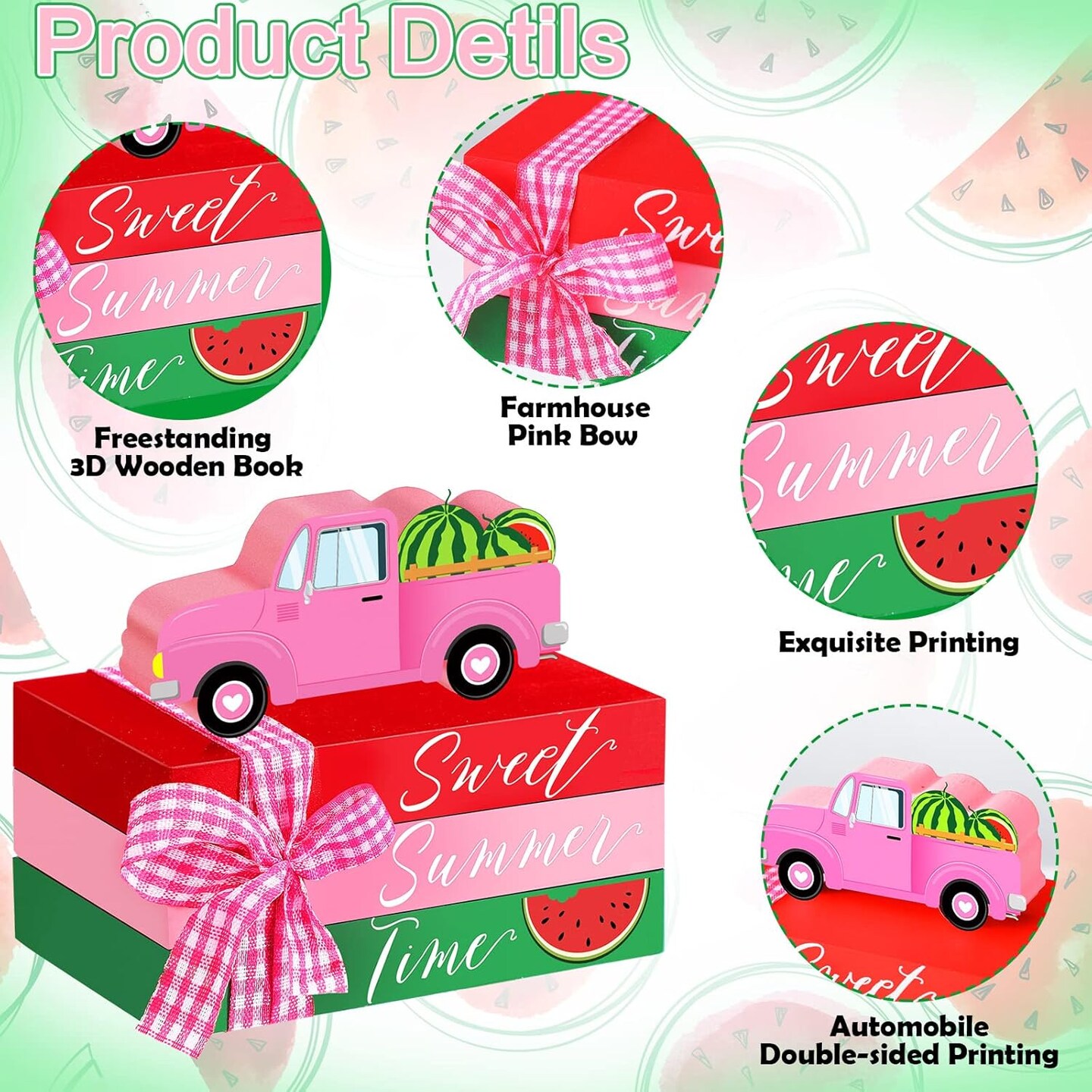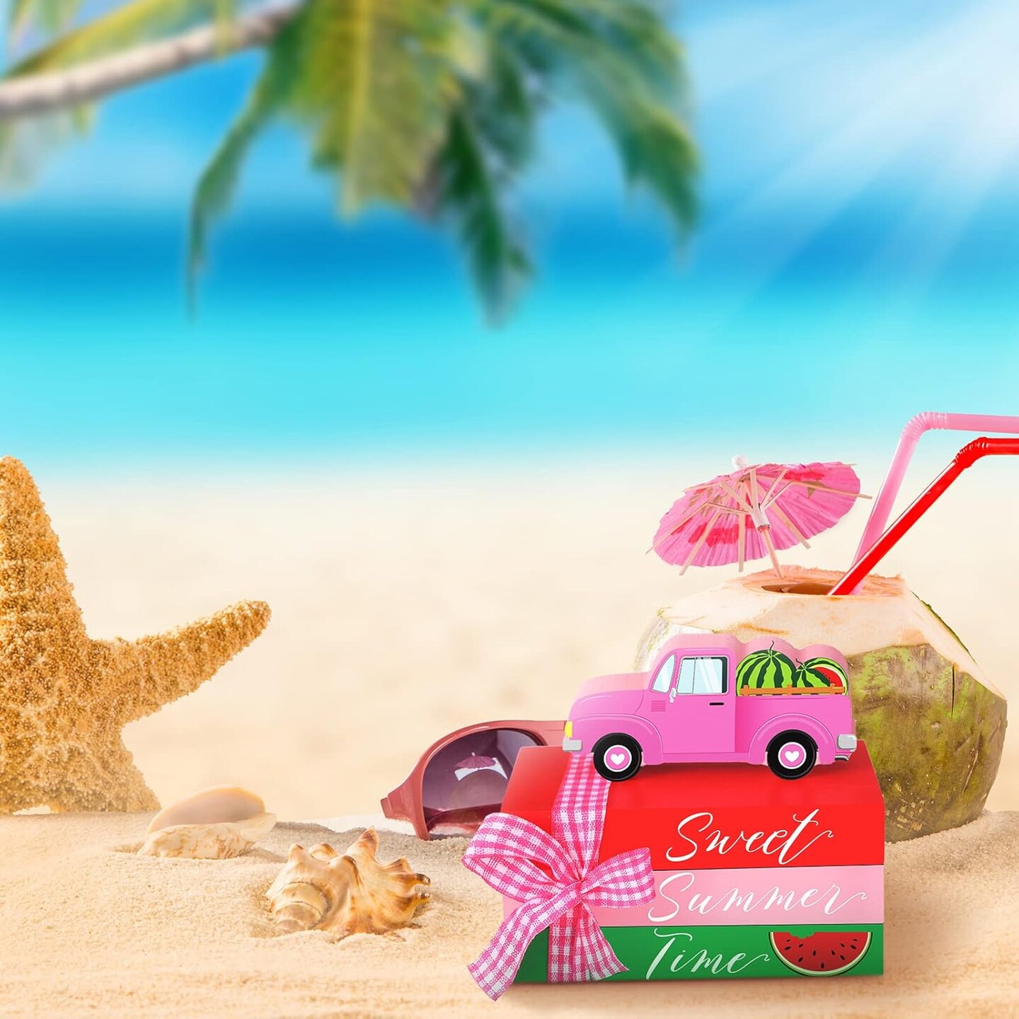 4 Pieces Summer Tiered Tray Decor Summer Kitchen Wood Table Decorations Mini Faux Books Stack for Home Party Table Shelf Farmhouse Accessories(Watermelon)