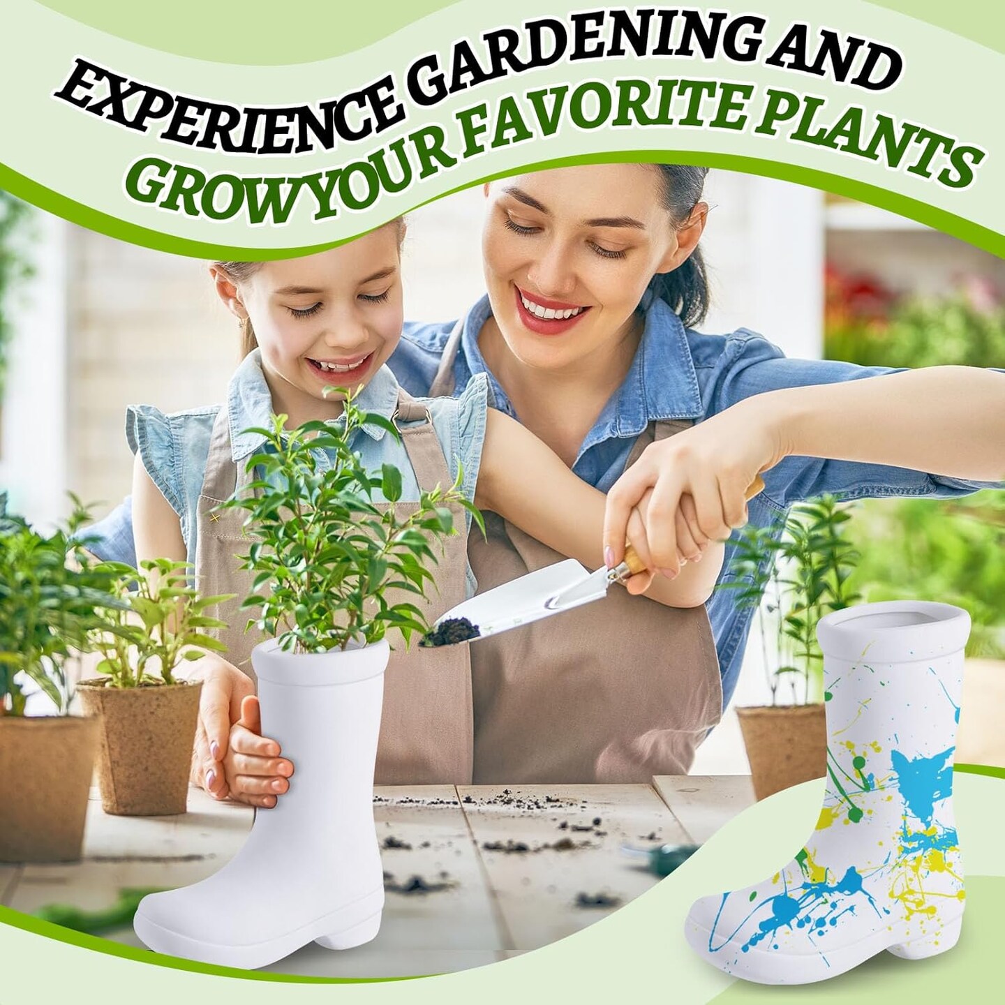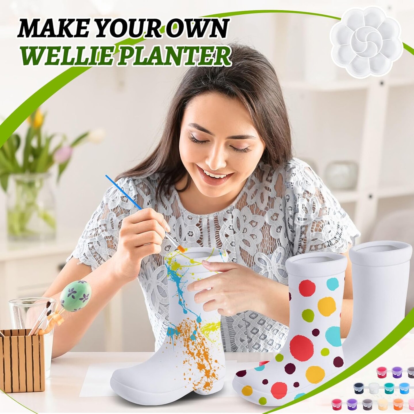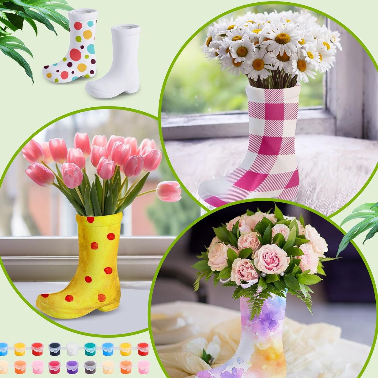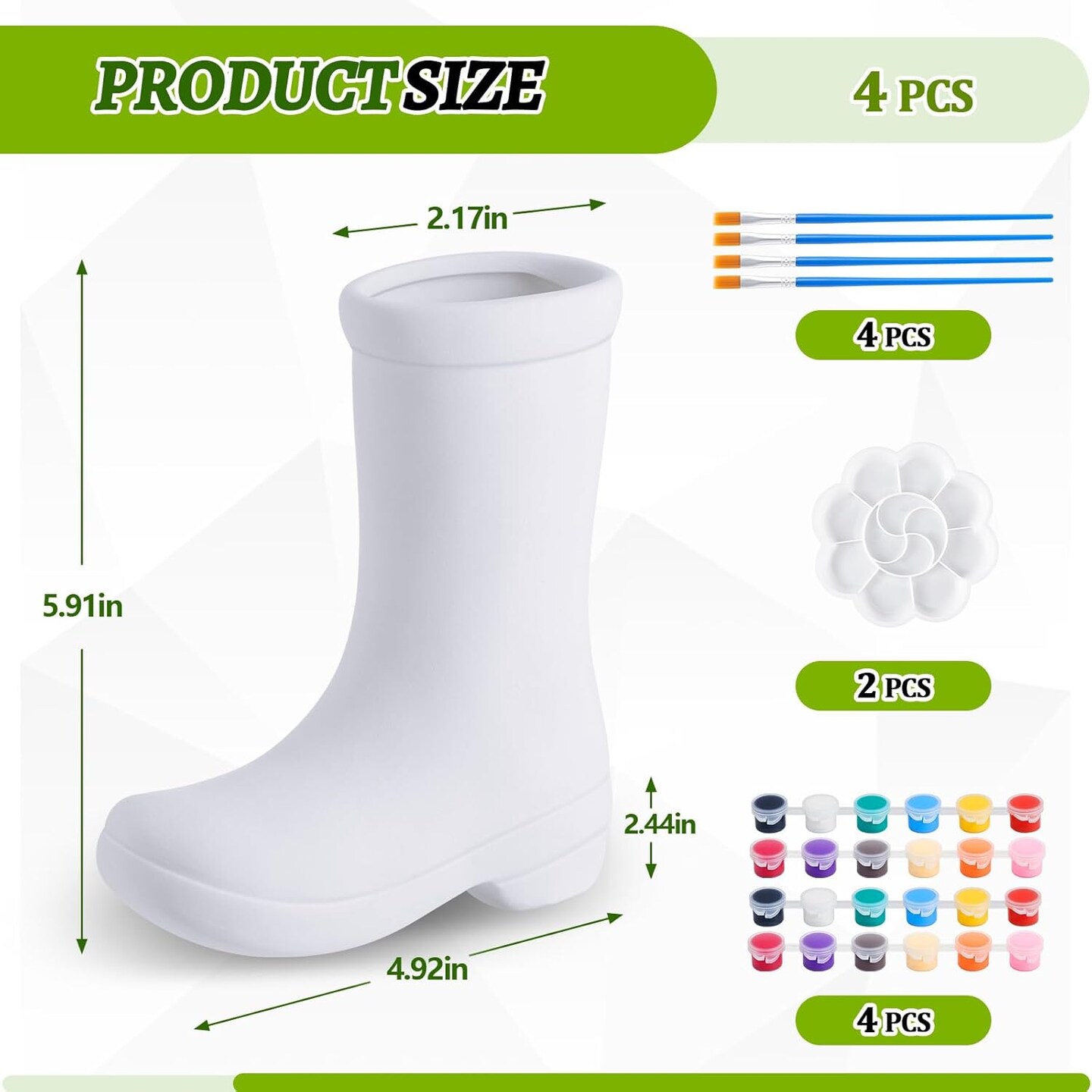 4 Psc DIY Ceramic Boot Planter Kit with Palette Paintbrush