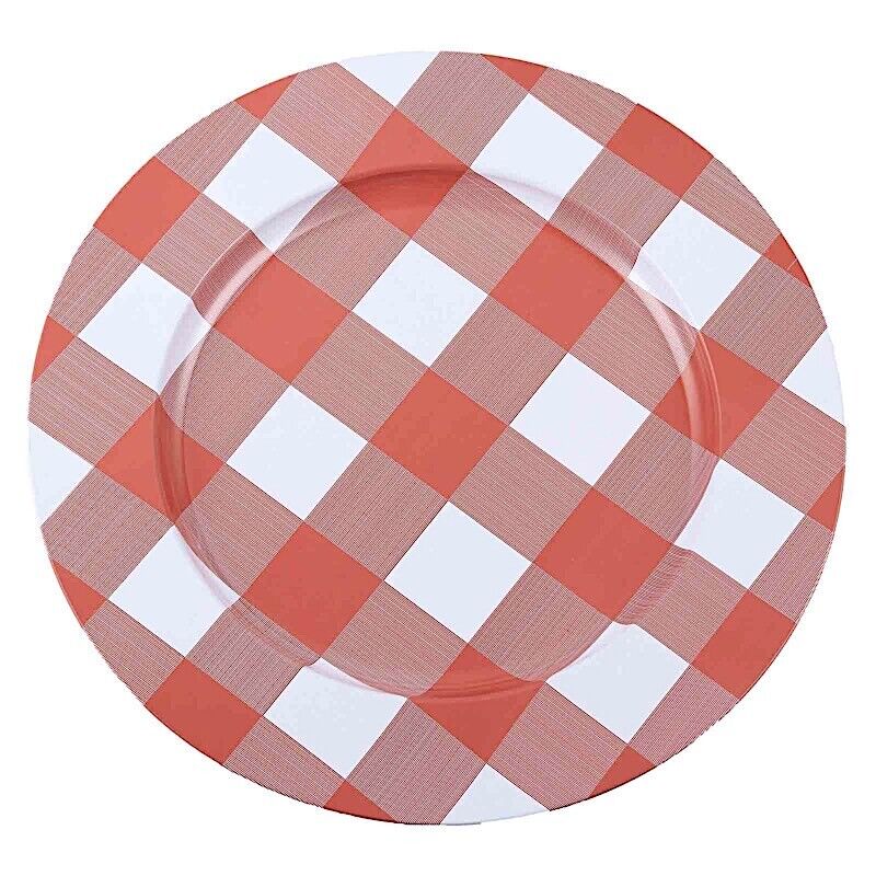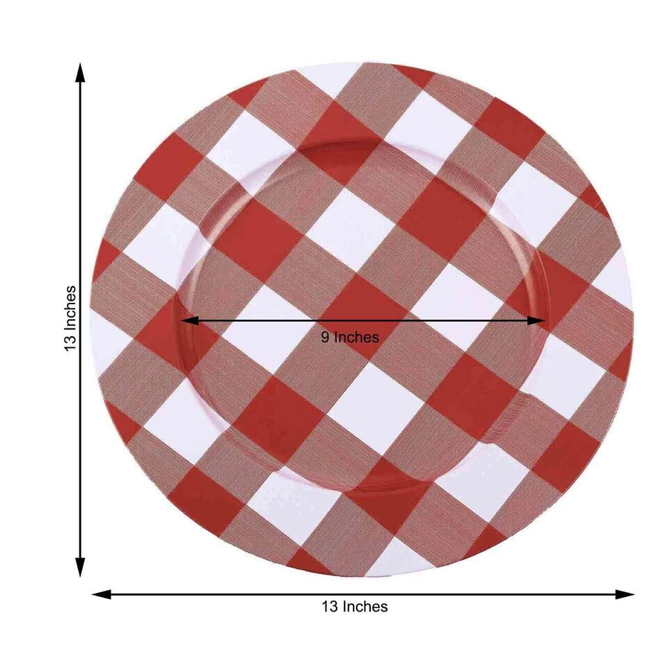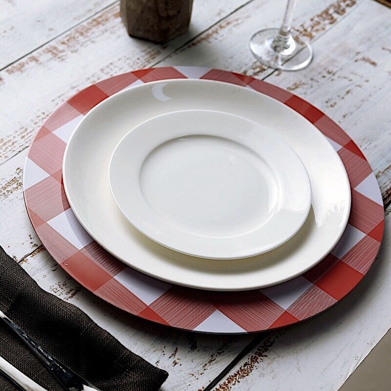 4 RED WHITE 13" Round Checkered Metal Charger Plates