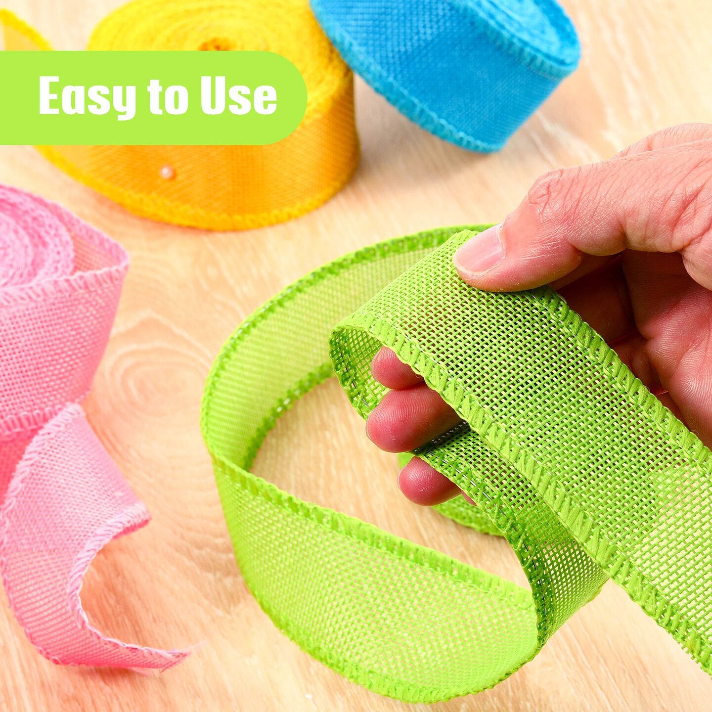 4 Rolls Easter Burlap Wired Ribbons, Solid Wired Edge Ribbon, Wrapping Burlap Ribbon, Burlap Wired Ribbon for Wreaths Home Decor DIY Crafts (Blue, Light Green, Light Yellow, Pink,1-1/2 Inch)