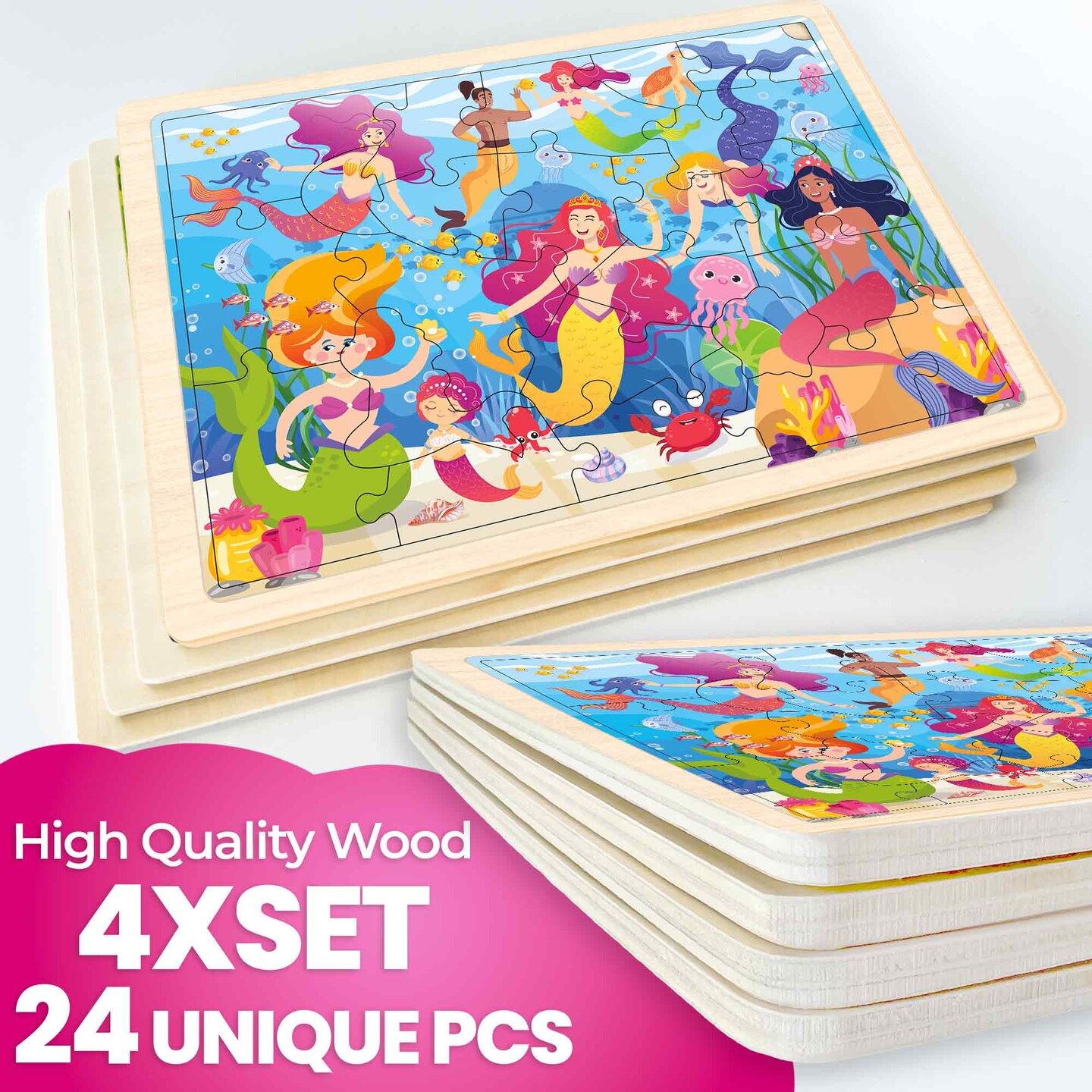 4 Set Wooden Puzzles for Toddlers | Mermaids, Princesses & Unicorns