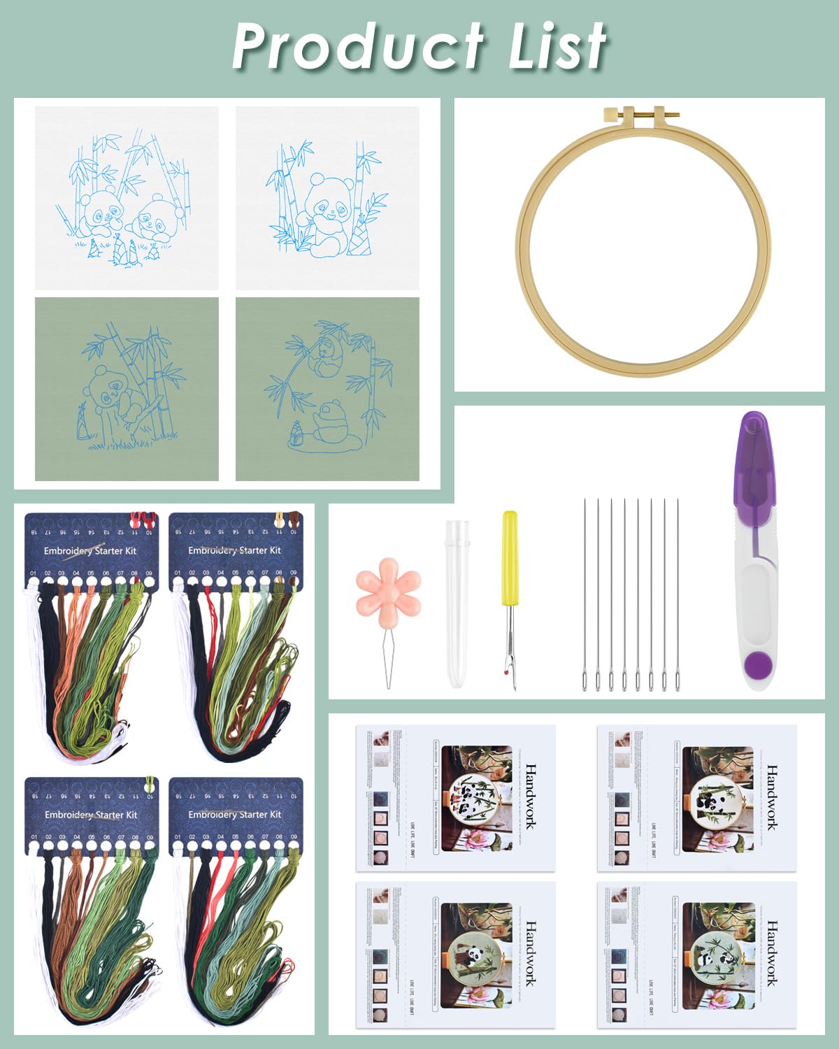 4 Sets Embroidery Kit for Beginners, Animal Cross Stitch Set for Adult Include Embroidery Cloth Hoops Threads for Craft Lover Hand Stitch (Panda)
