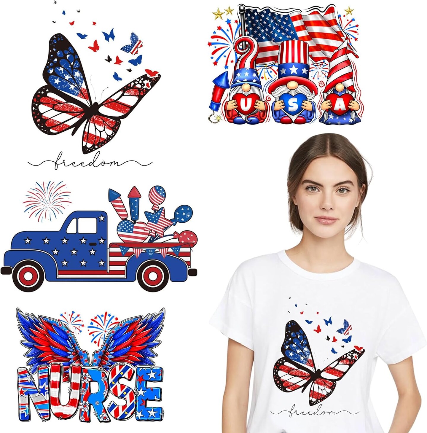 4 Sheets 4th of July Fireworks Heat Transfer Iron on Patches