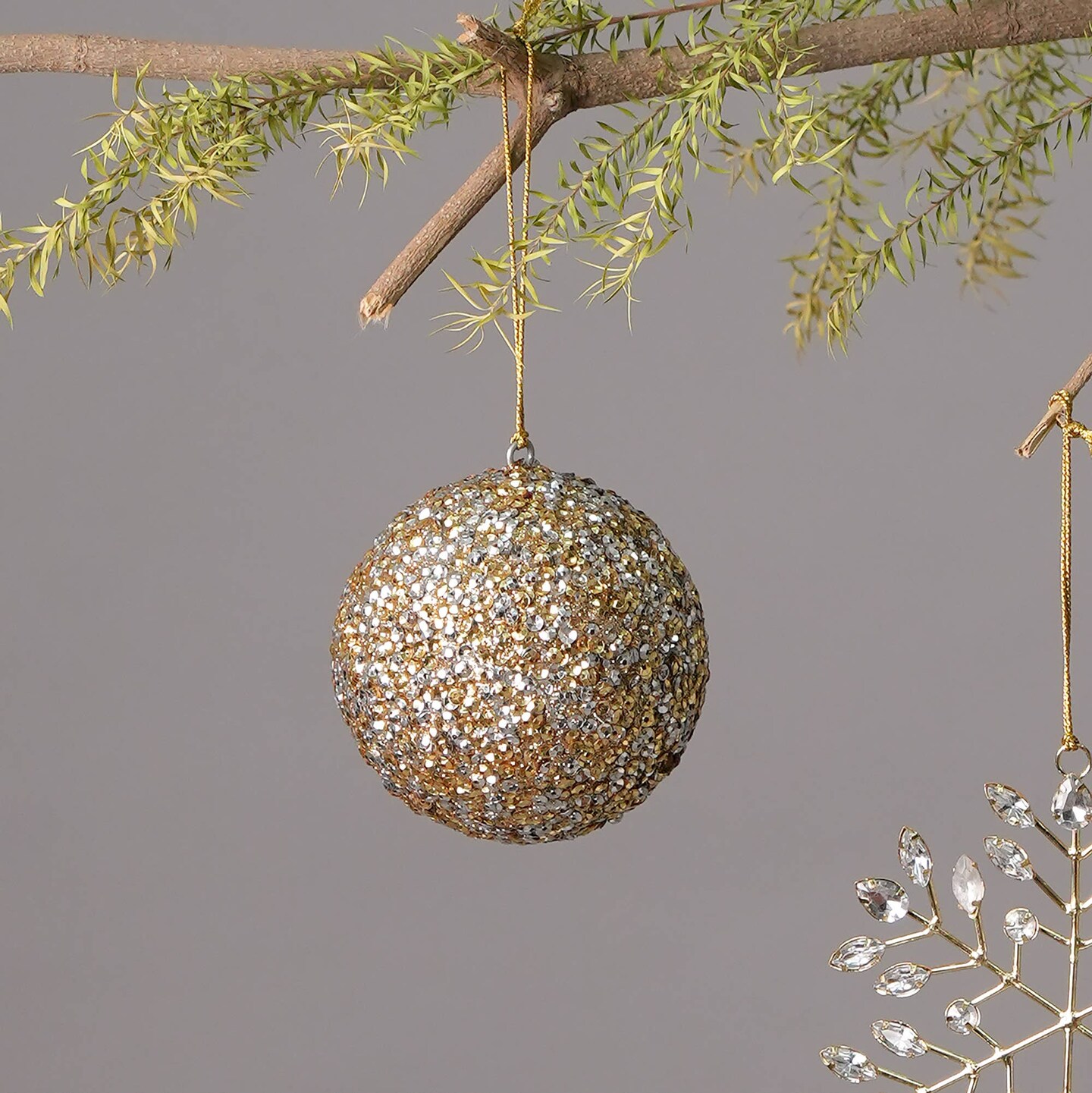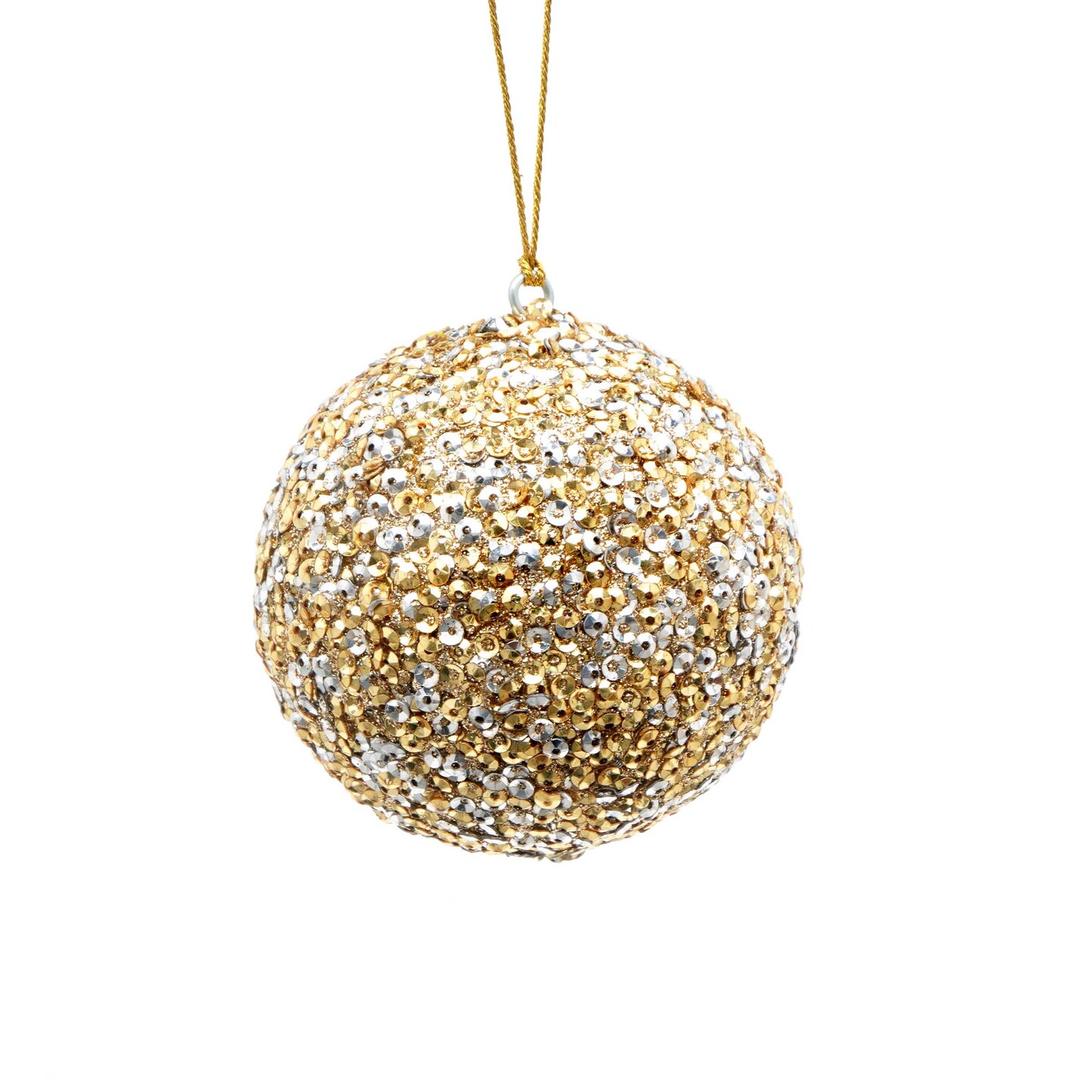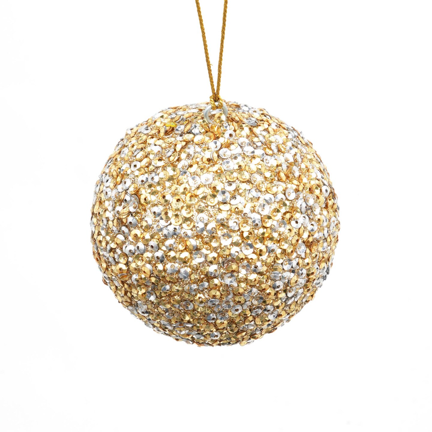4" Silver & Gold Sequined Hanging Ornament – Sparkling Holiday Christmas Tree Decoration